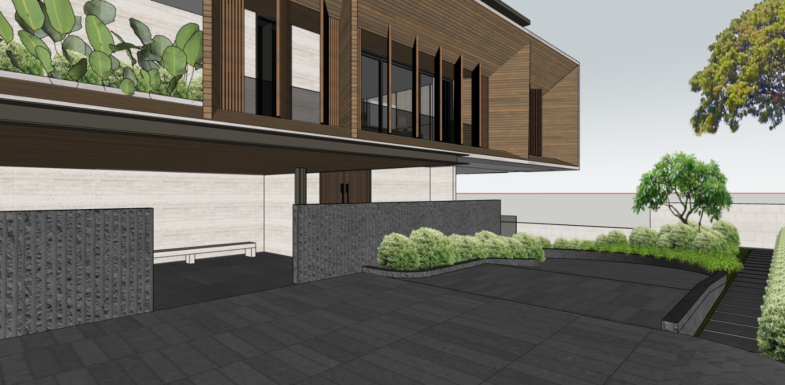 generate a highly photorealistic exterior architectural rendering of the project core requirement strictly preserve all architectural geometry proportions and design intent do not modify any structural elements or spatial relationships composition very important vertical or slightly portrait framing preferred view should capture depth layering of spaces connection between levels include foreground midground and background for spatial richness lighting natural daylight late afternoon preferred warm soft sunlight with long shadows highlight depth texture and spatial layering avoid overexposure or dark moody scenes materiality render all materials accurately timber warm natural grain concrete subtle texture variation stone depth and realism metal soft reflection avoid flat or artificial finishes landscaping enhancement allowed introduce lush well composed landscaping trees soft planting greenery integrated into architecture landscaping must enhance the architecture not dominate it atmosphere calm refined high end residential feel slight human presence optional subtle not staged rendering quality ultra high resolution photorealistic comparable to professional architectural photography goal create a striking competition level hero image that communicates the architectural concept clearly and beautifully