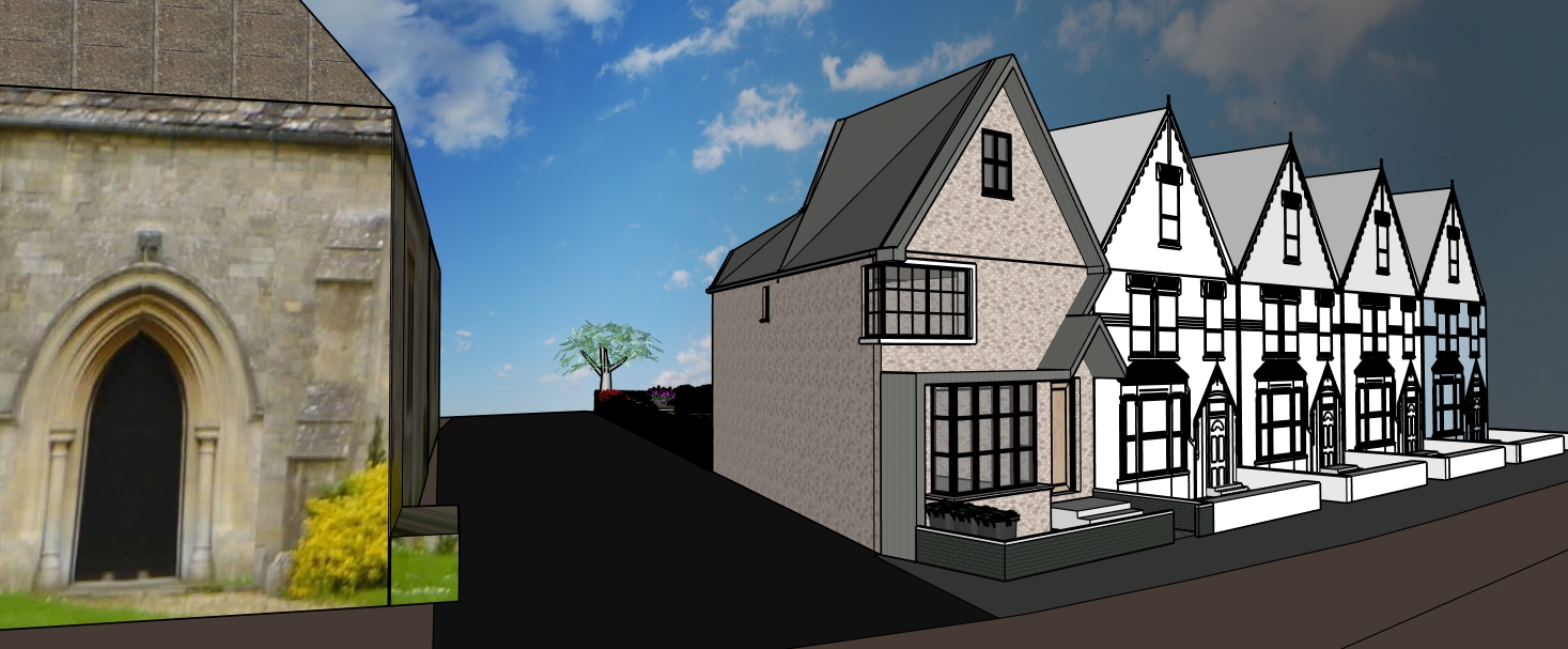 ultra realistic high resolution architectural photograph based exactly on the geometry and composition of uploaded sketchup image the main building must be focused with the clear lighting buff facing brickwork with the black frame metal roof covering and timber fence on the back standing seam metal remove any unwanted lines from the elevation all the materials in the sketch turn into realistic texture under soft light keep the environment very similar in the image make soft professional architectural style photography with no changing or adding any element highly detailed textures 4k resolution with wide angle view