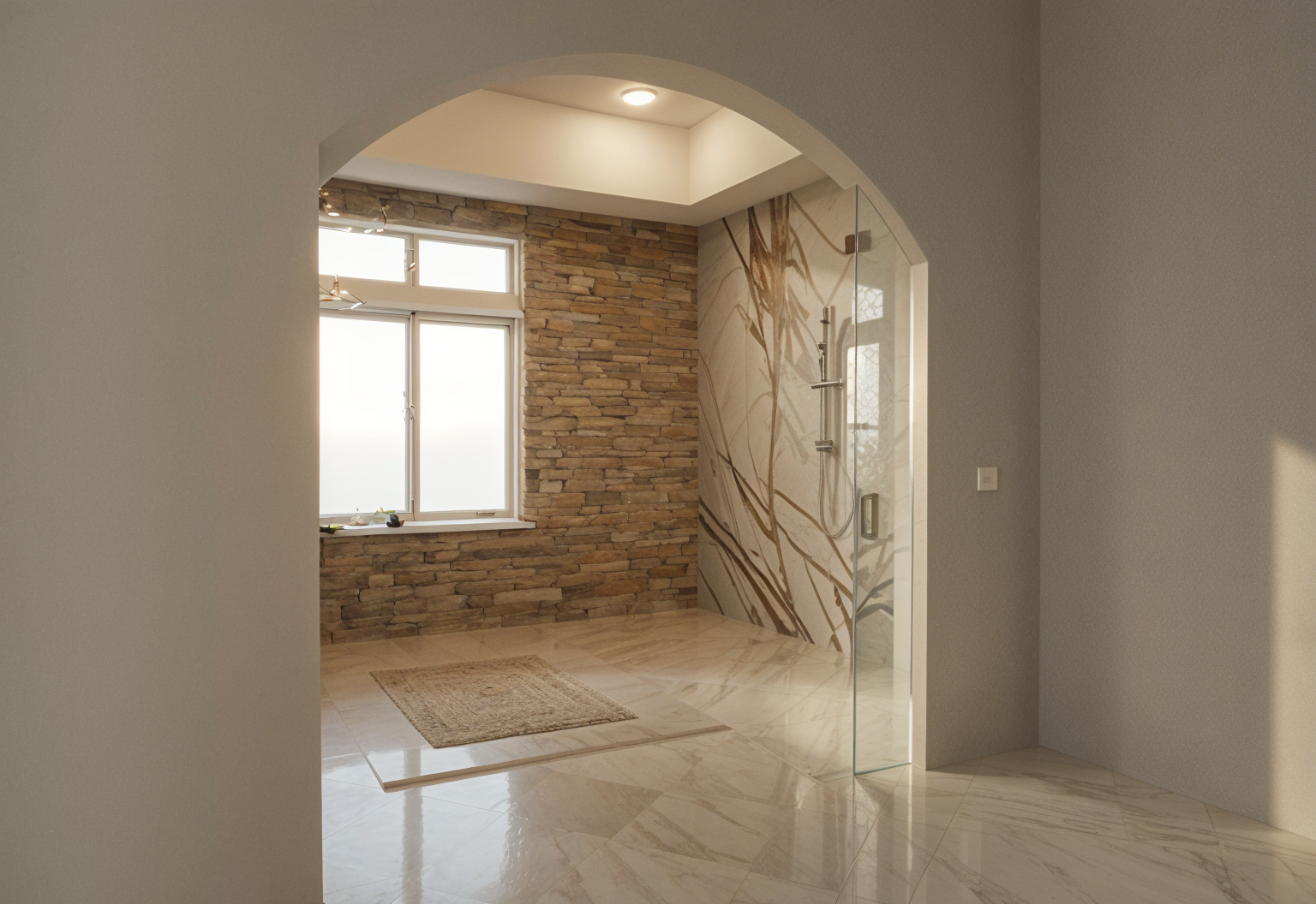 create a photorealistic rendering keep all the elements proportions and finishes as they are change the color of the two table lamp bases to a medium brown and the lamp shades off white make the two table lamp bases one half their width