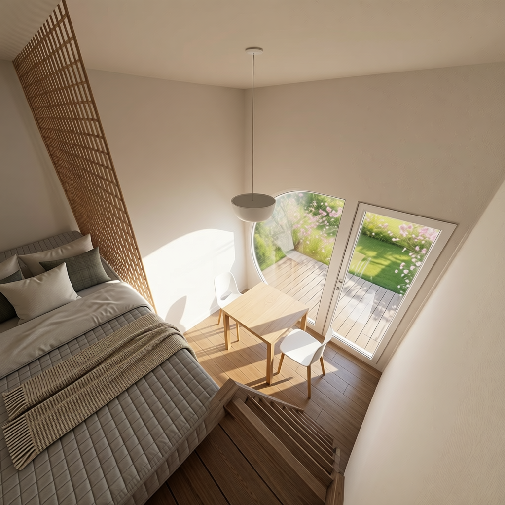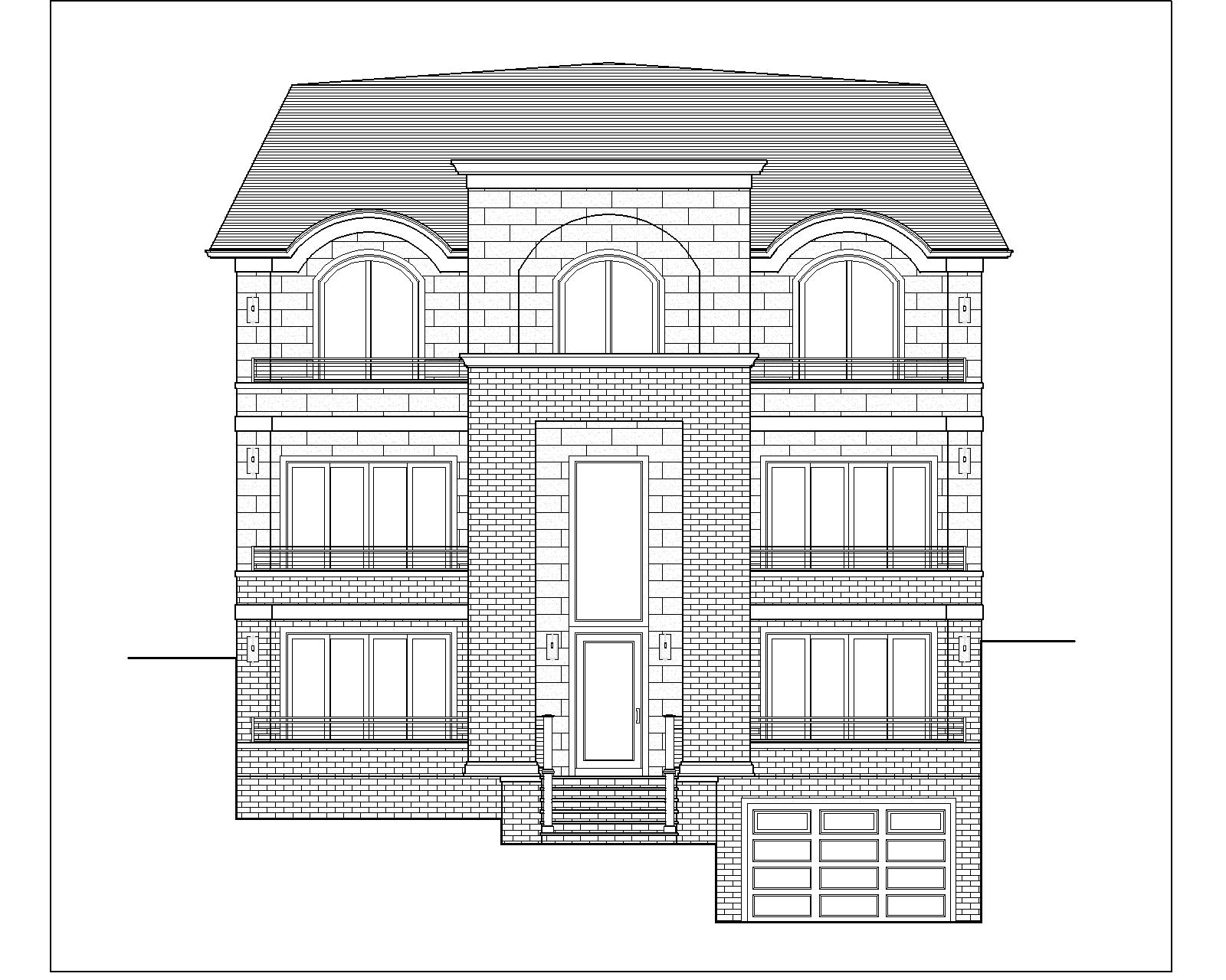 please make a realistic render with warm modern tones and black window frames set in a residential neighborhood with some large mature trees in the background material showing natural brick limestone and stucco show contemporary accents