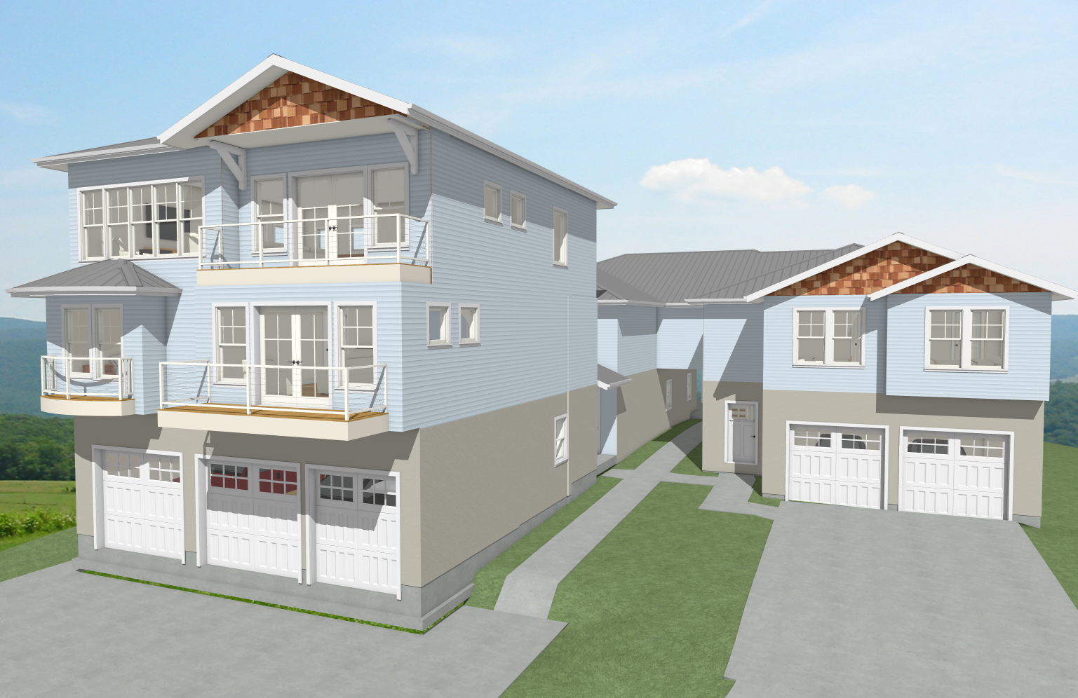 create a photo realistic image o fthis rendering including a tropical landscape with gray paver driveway