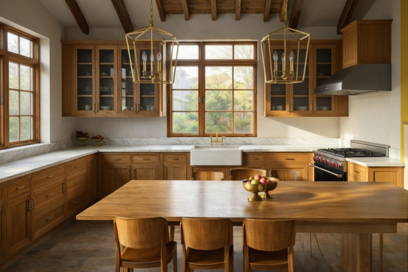 move the range and hood to the area where the window is on the left