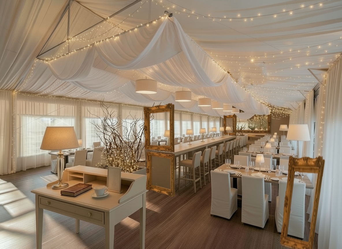 in front low frame right put mirror and write handwritten duck menu on it