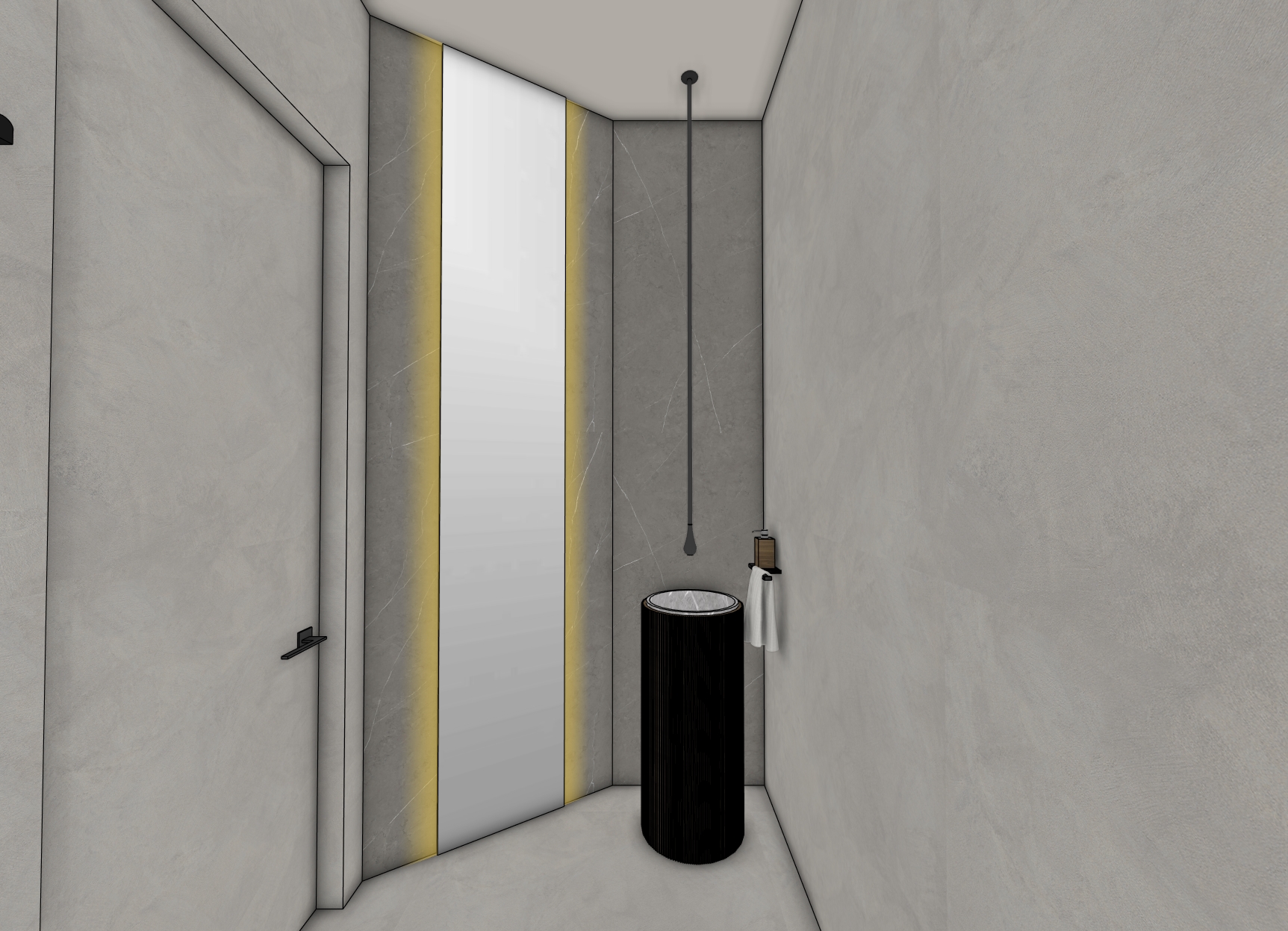 create realistic 3d rendering of this powder room design as rendered in enscape or lumion do not change any shapes or colors