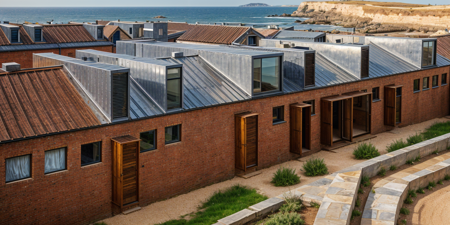 exterior shot match the blue apertures style from mood board sample match the background and street furniture