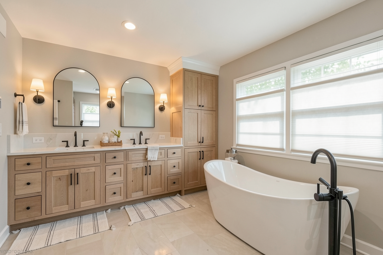 make sky a little more gloomy light blue and metal elements in facade change color from dark grey to metallic blue