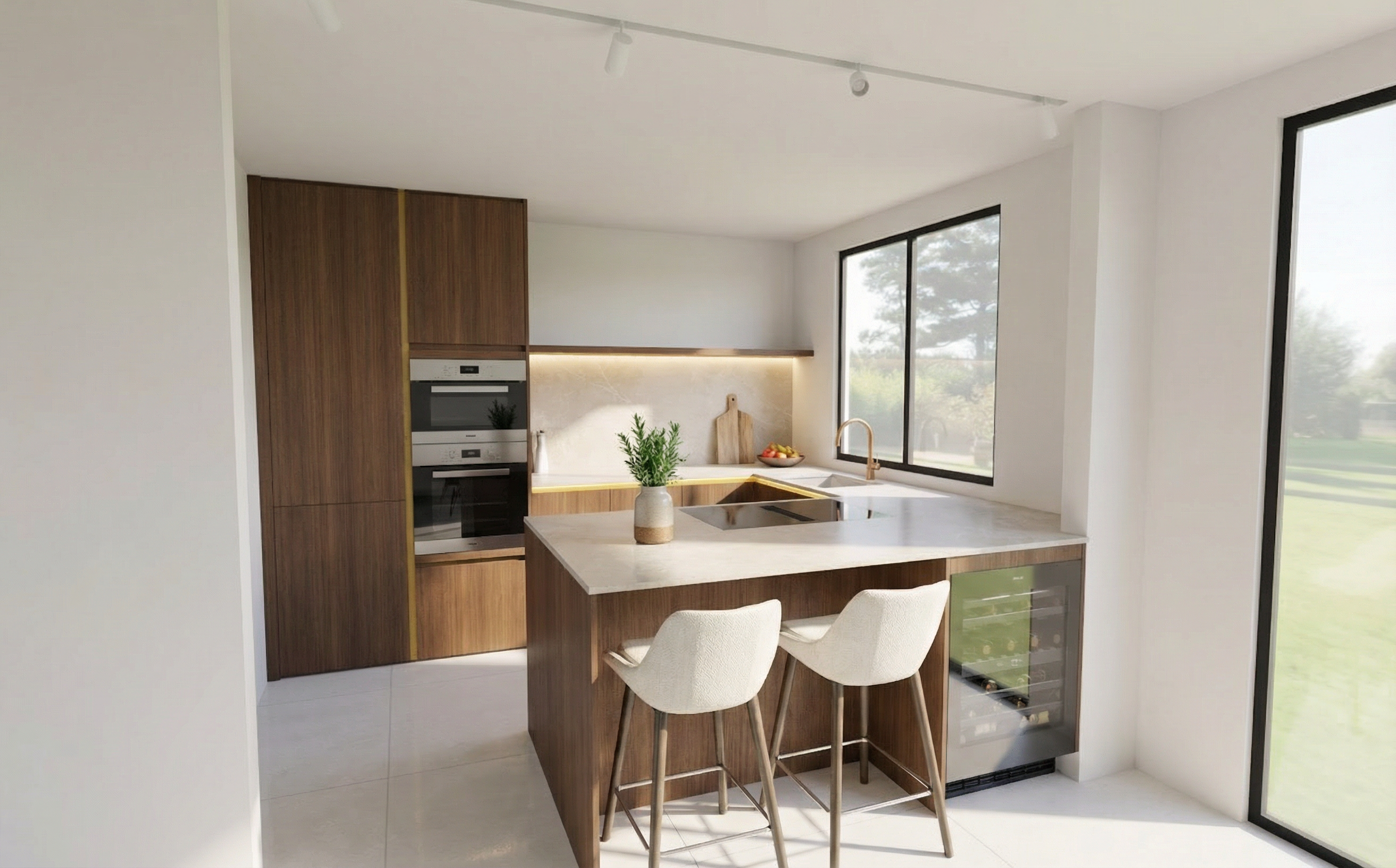 modern rocky mountain industrial architecture contemporary car wash building in bigfork montana architectural presentation rendering artistic but clear and readable not photorealistic single story building with strong horizontal forms and one tall vertical architectural blade element as the main focal point between office and self serve bays medium gray standing seam metal roof weathered steel vertical blade feature ground face brown cmu veneer at automatic bay walls vertical galvalume metal panels above automatic bay entry doors opaque glazed overhead doors with black aluminum frames horizontal metal cladding at self serve bay walls and office areas vertical corrugated metal panels above self serve bays with building lettering clear january morning in bigfork montana crisp blue sky cold clean air subtle frost long soft winter shadows eye level architectural perspective with strong foreground paving leading toward the building clean composition clear material separation strong architectural silhouette presentation style architectural visualization calm refined and professional maintain the same building and camera view increase architectural clarity and material definition keep artistic presentation style asphalt paved site with concrete aprons at wash bays and front office opaque glass in bay doors clear glass at office keep materials and signage text consistant with my image the entitre front entry at the office is charcoal corrugated metal installed horizontally