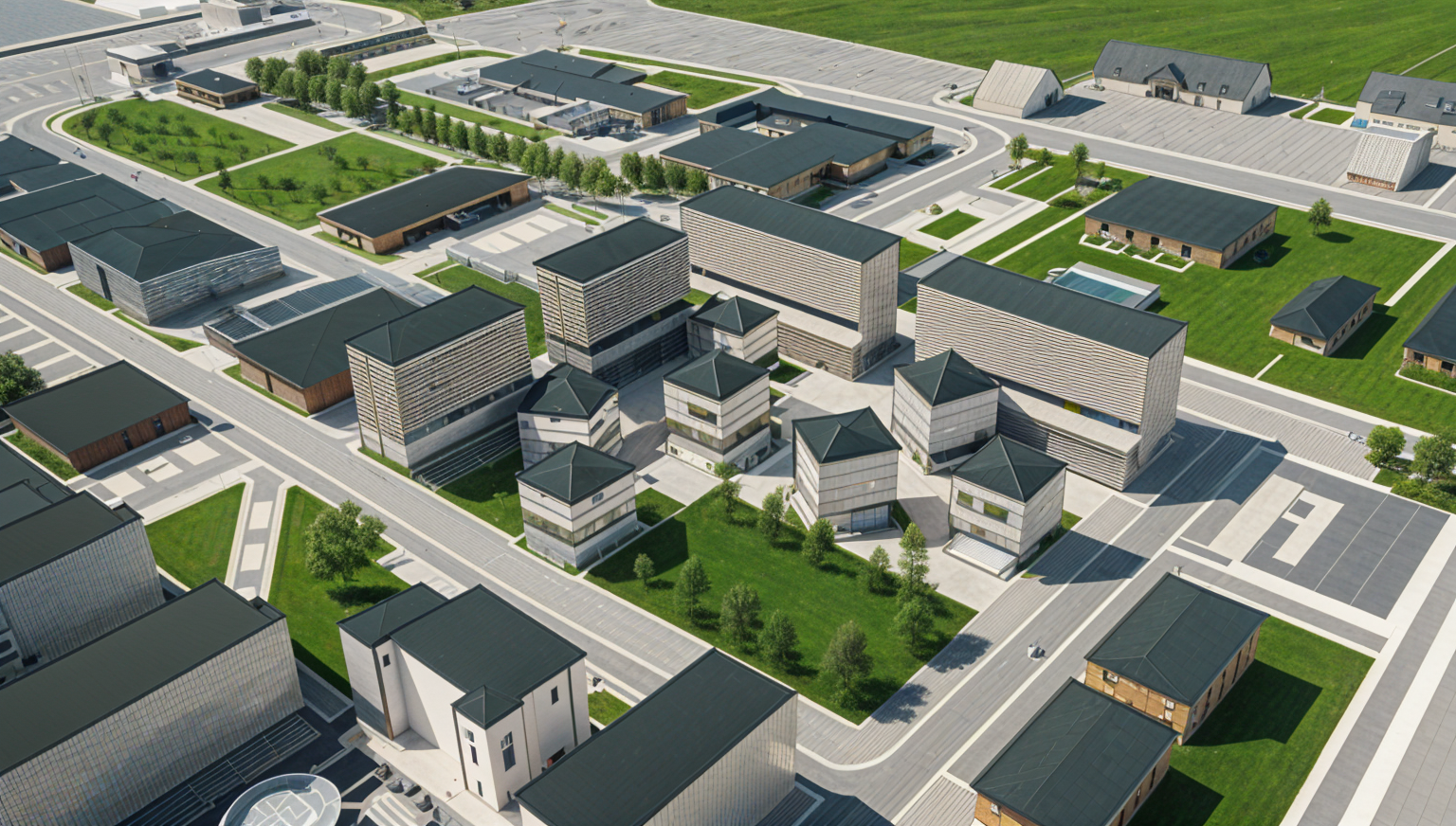 zaha hadid exterior shot create a modern elegant living space emphasize the sleekness and coziness of a small open plan kitchen and living room use soft muted earth tones for the walls and kitchen cabinets primarily warm greys and taupes the wooden elements including the tall cabinet and dining table should be a rich deep wood color to add warmth the armchairs should be upholstered in a soft sage green fabric contributing a subtle splash of color the pendant lights should be soft white globes creating a gentle ambient glow add sophisticated glassware and white plate settings for the dining table to enhance the refined atmosphere ensure the room is filled with natural light for an airy welcoming ambiance architecture