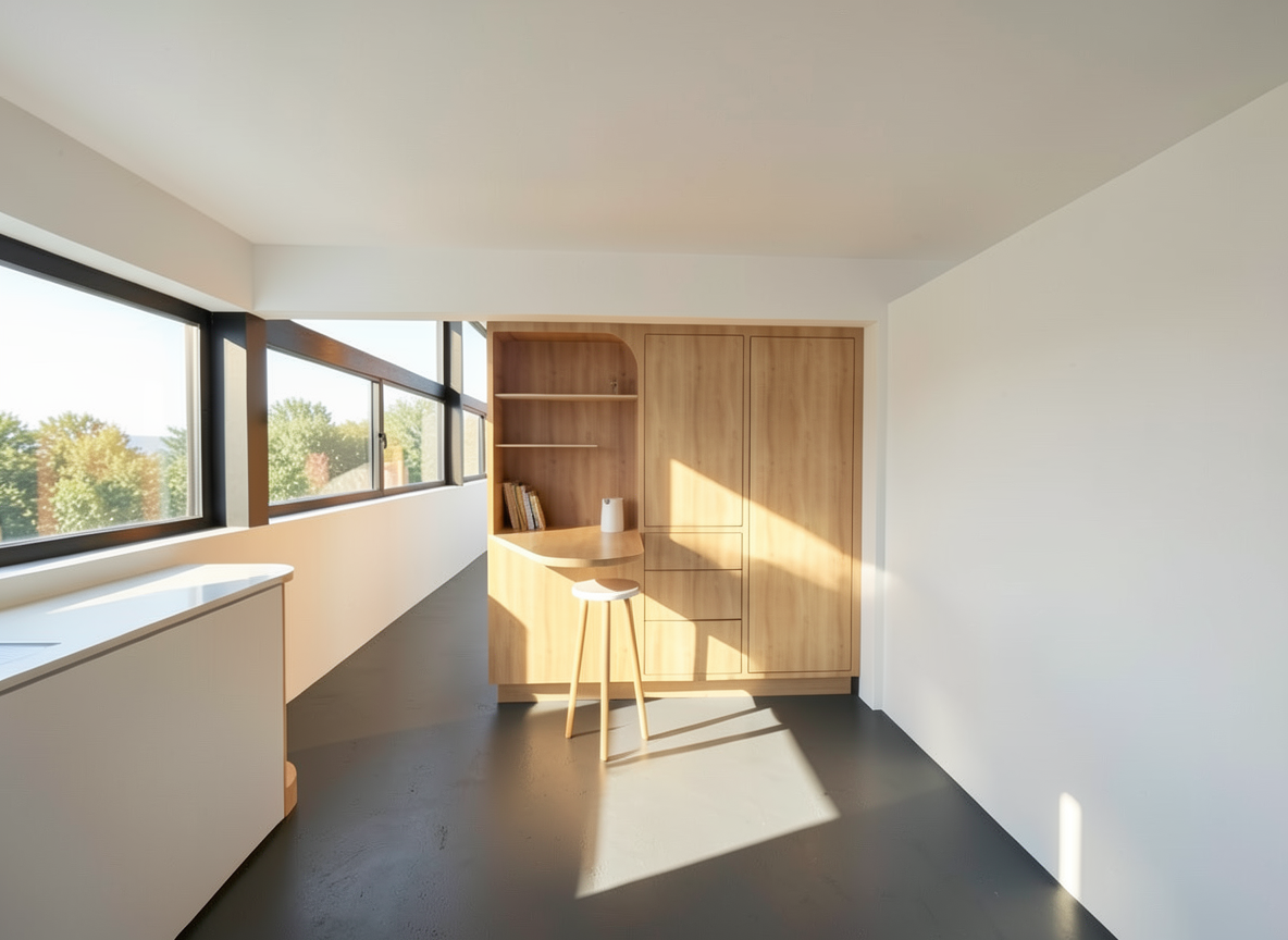 open the left wall exactly at the width currently occupied by the vertical wooden panel that contains the tv completely remove that portion of the wall wood and covering and replace it with a full height glass window from the top edge of the backrest of the sofa to the ceiling the glass window must have a thin black iron frame an elegant and contemporary vertical subdivision a door integrated into the same glass system a realistic external view of a mountain landscape at evening night depth natural lighting atmosphere consistent with the internal lighting perfectly maintain consistency in internal lighting and reflections on the glass warm and cozy atmosphere of the room do not modify anything else furniture tables chairs sofas floor ceiling and beams remaining walls and their textures panel and tv on the front wall proportions framing and general lighting