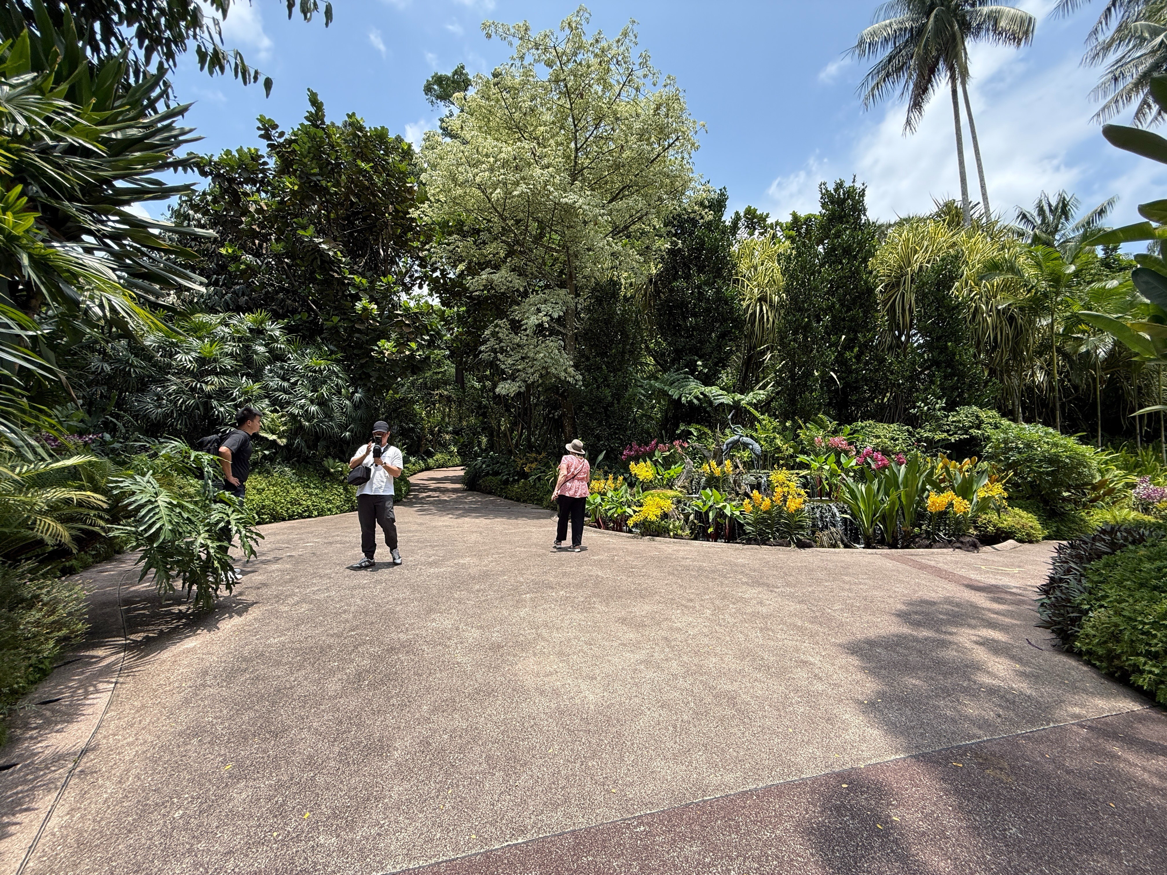a render of a night installation at the singapore national orchid gardens at the side is a light box detailing out the story of a rare energy surge that has brought the orchids to life the main installation is made out of numerous lanterns on tall poles spread out throughout the space glowing lights along the pathway leads the path forward for visitors