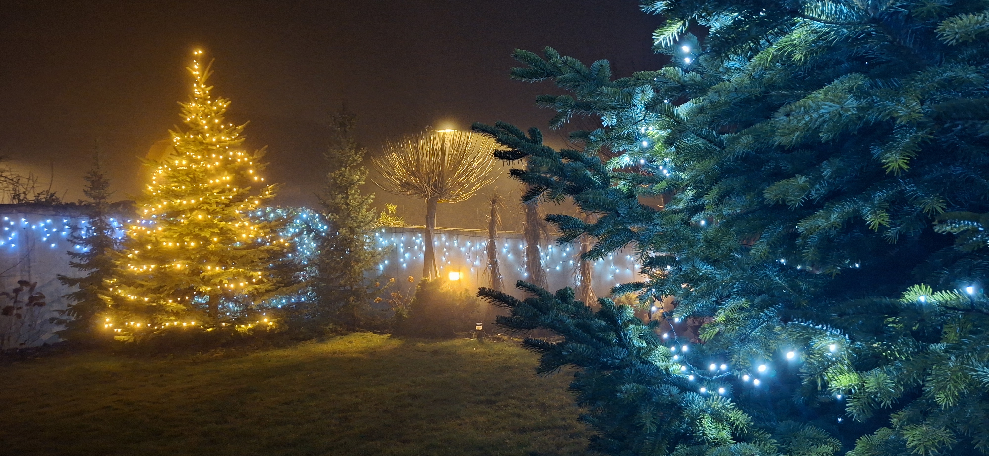 christmas night snowing church forest christmas light old loghouses village