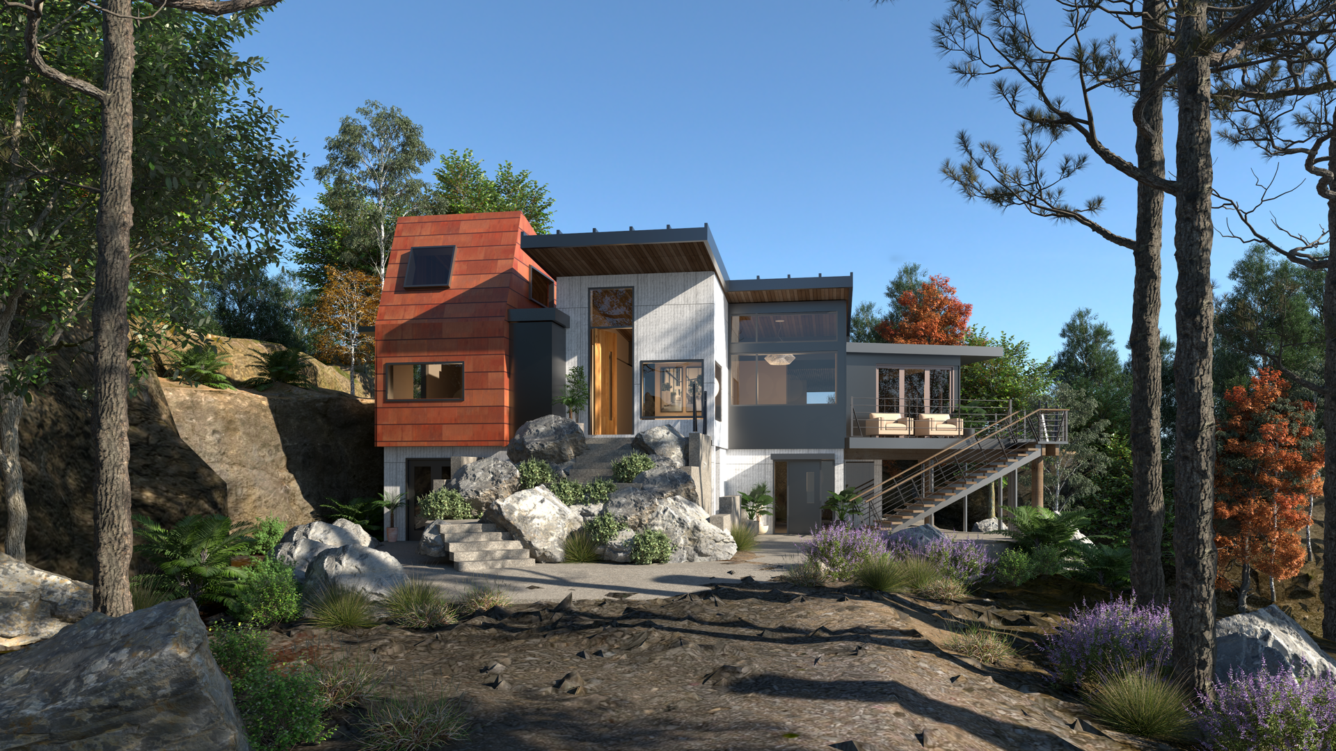 make more in a west coast seattle style material palette improve front landscaping
