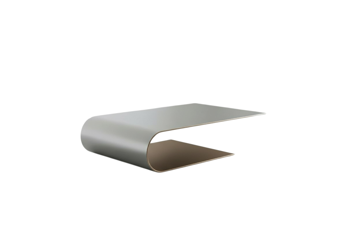cinematic walkthrough of a sleek minimalistic showroom featuring a single modern designer table as the star product the environment is clean spacious and uncluttered