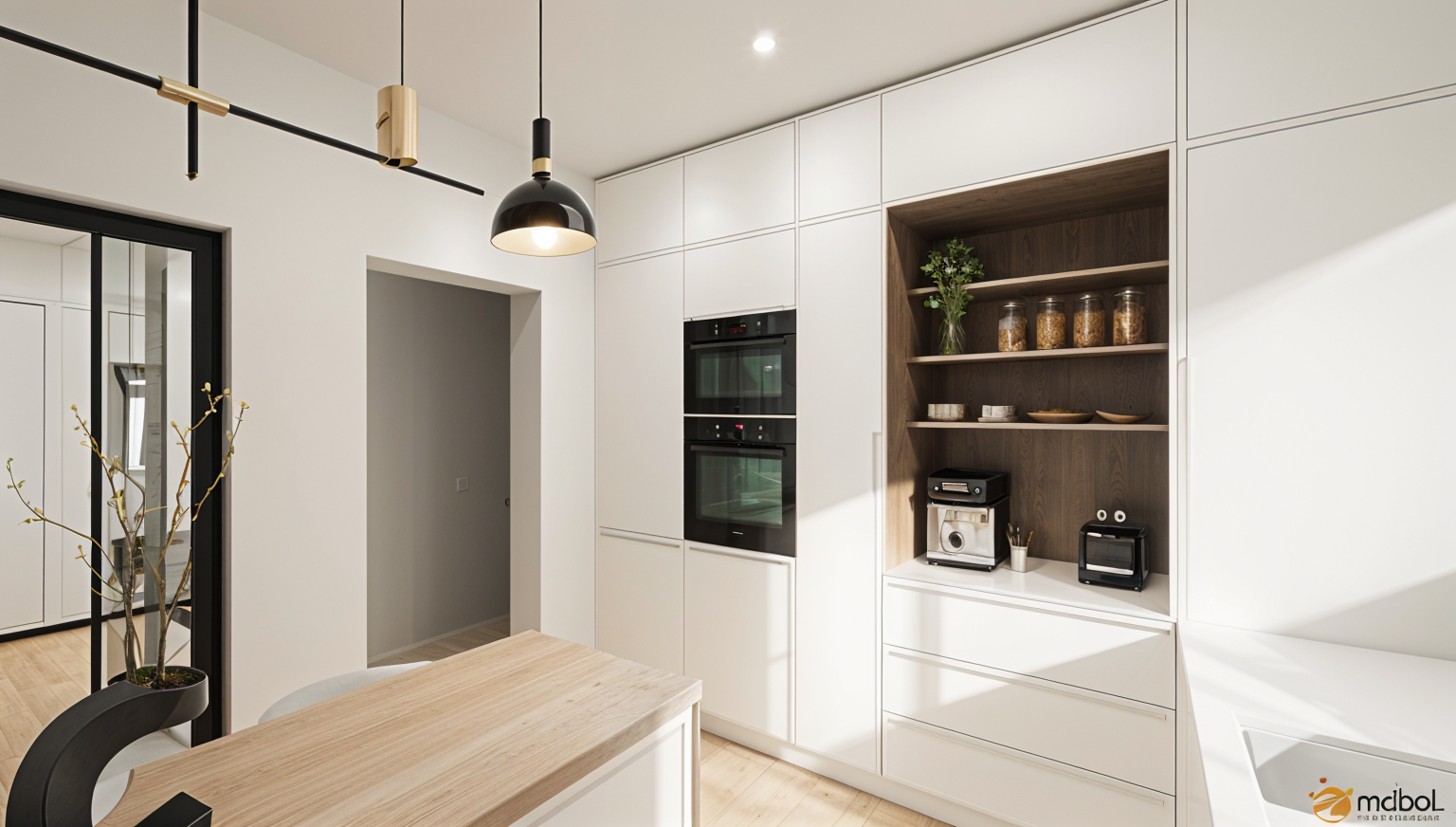 photorealistic modern kitchen interior natural daylight coming through windows realistic shadows and reflections high quality materials accurate textures for wood stone and ceramic surfaces clean and minimal styling professional interior photography 35mm lens balanced exposure ultra realistic lighting preserve original layout preserve cabinet design preserve appliances and proportions no changes to structure or furniture