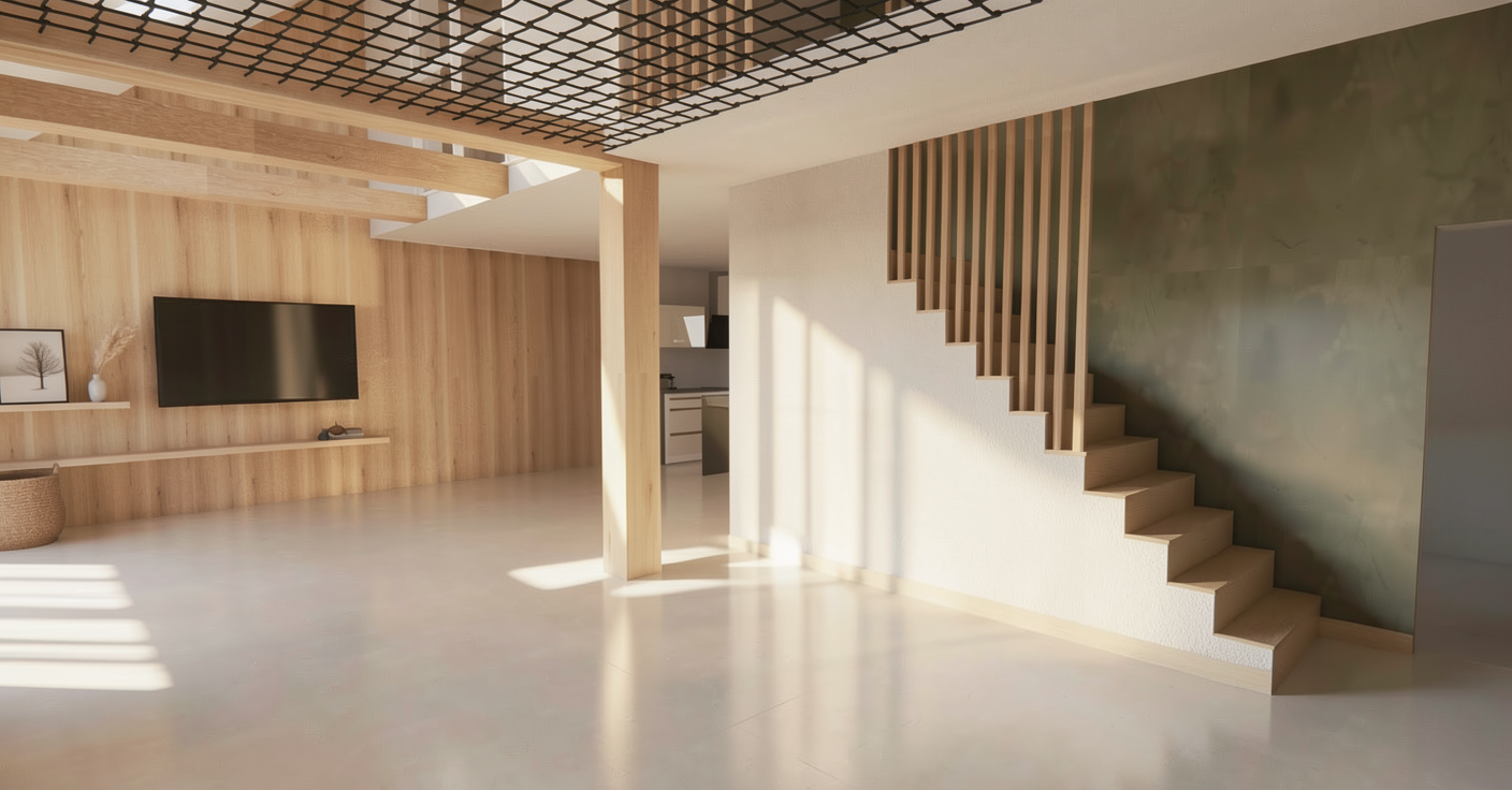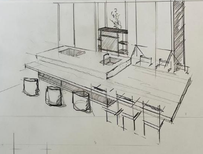 k chenarbeitsplatte in grauen stein schwarze fronten heller raum schwarze deckenleuchten
