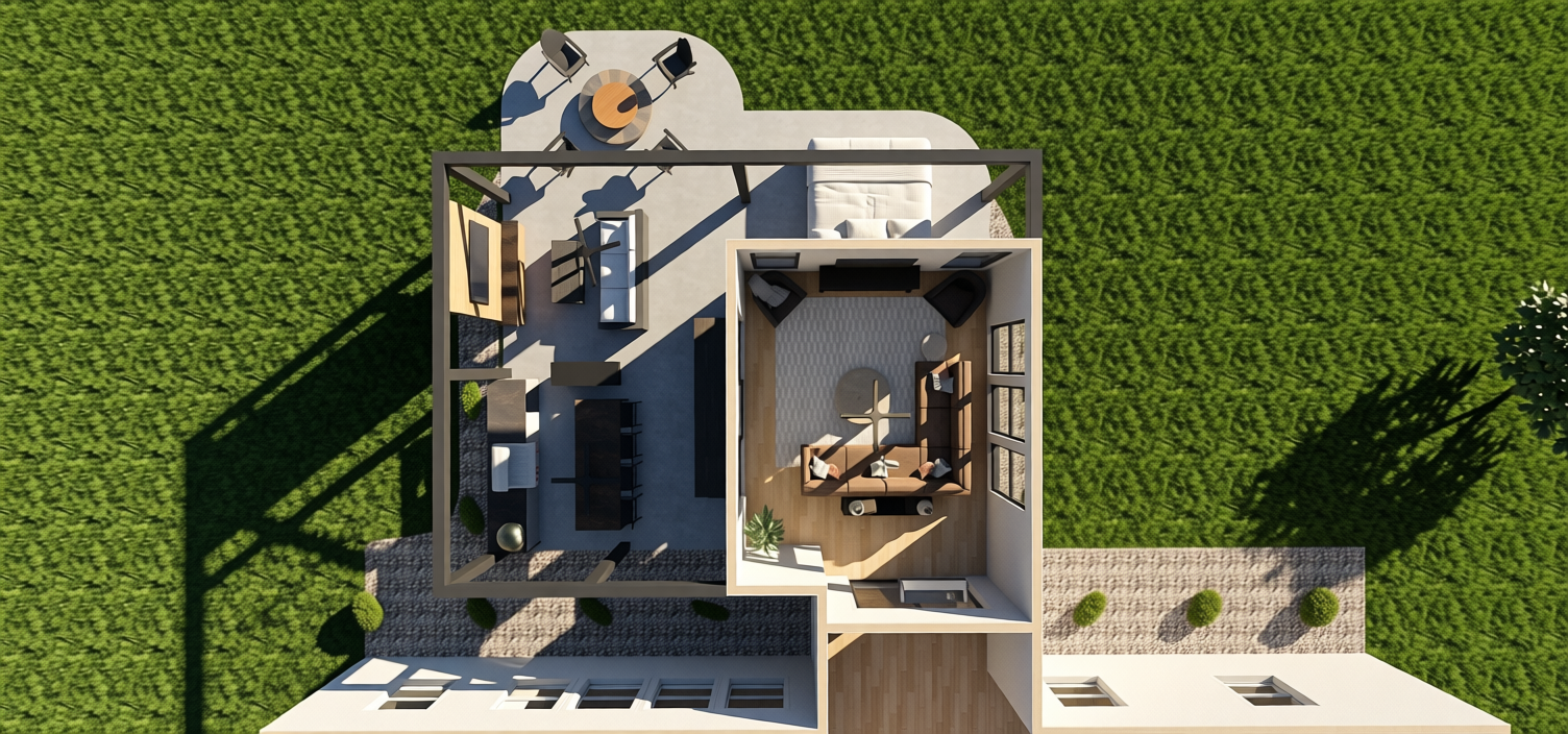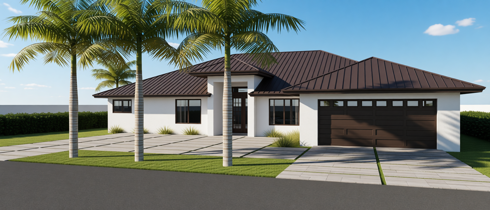 exterior shot render into 3d visualisation exterior finished in roman traventine unfilled
