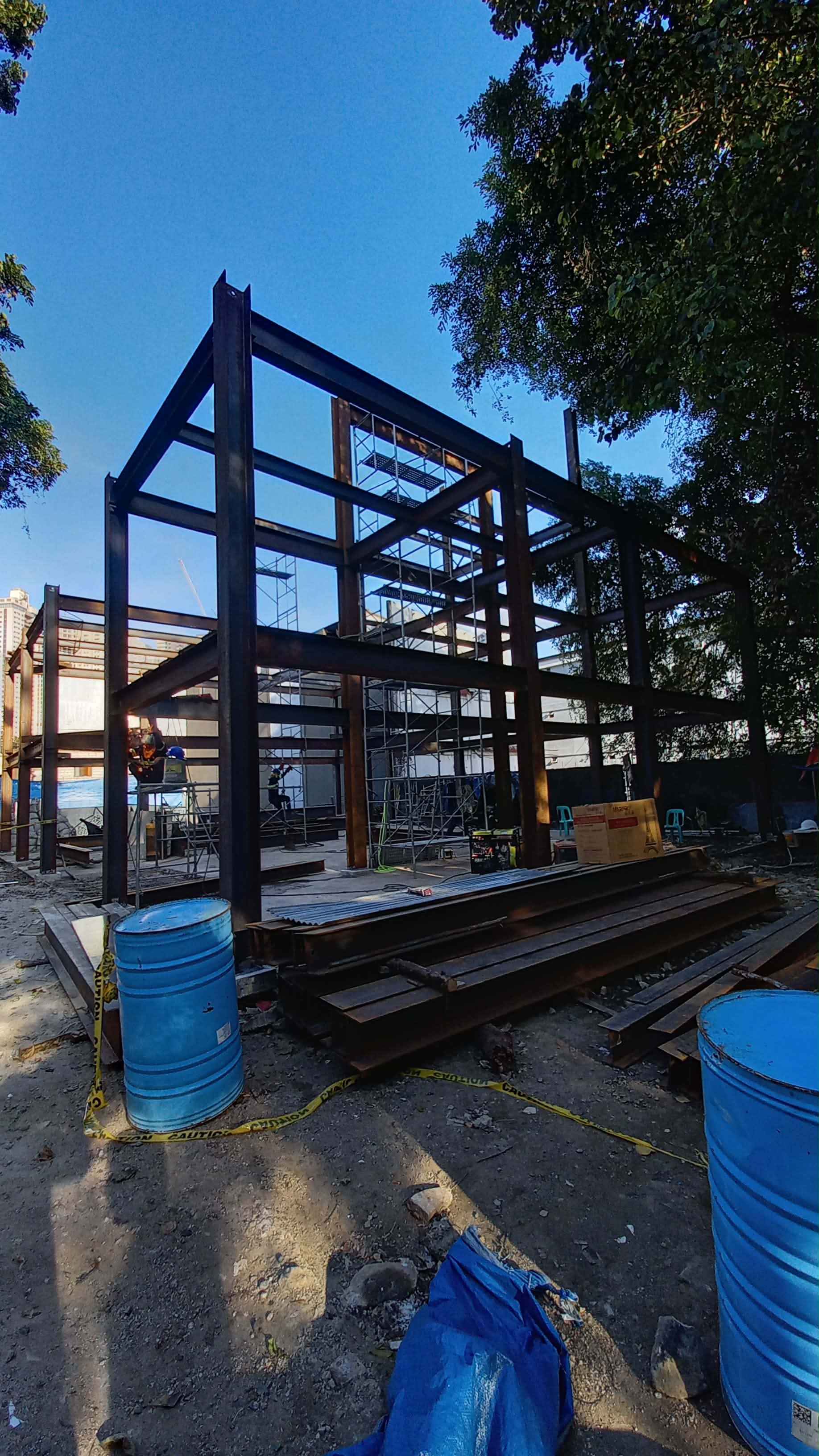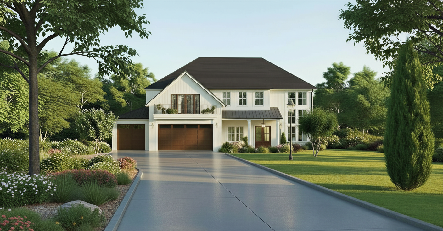 brutalism exterior shot create a photorealistic render of a three storey office building use a combination of glass and concrete the setting is bright daytime architecture