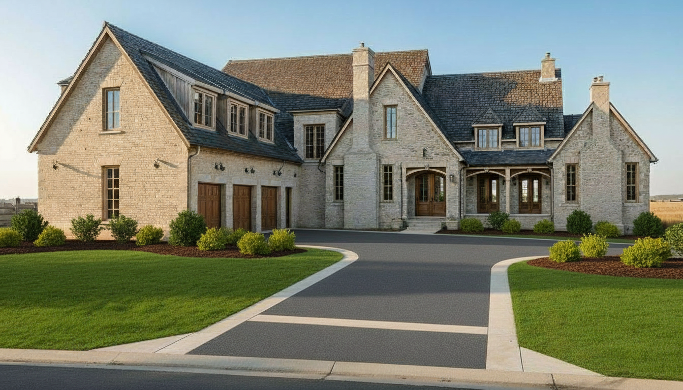 make the brick dark brown make chimneys gray stone