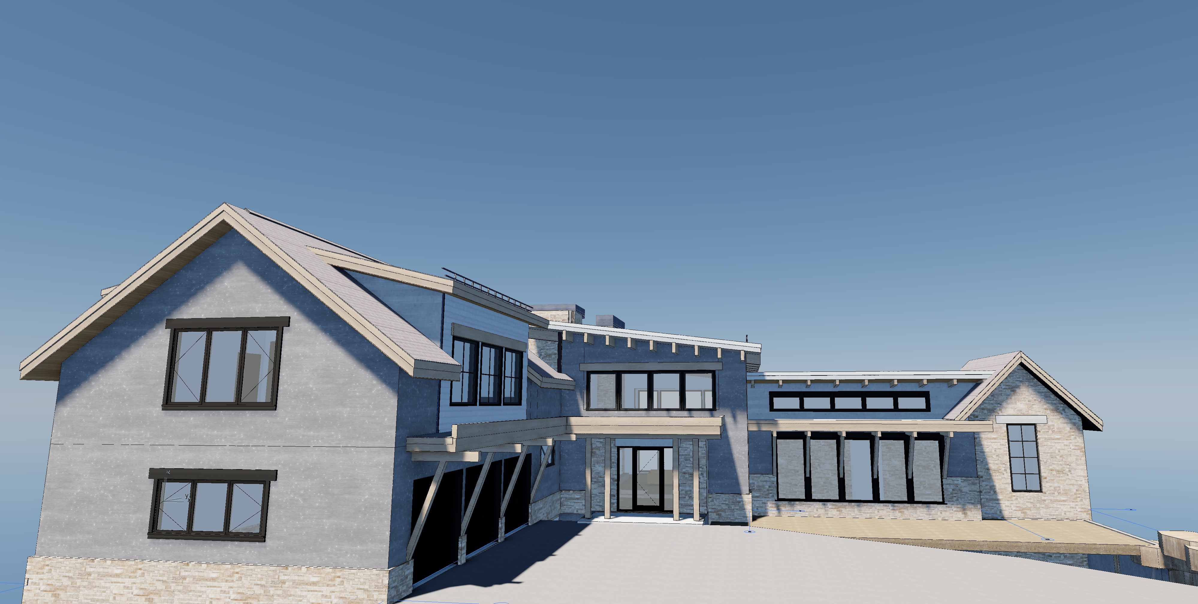 luxury mountain modern ski home grey wood siding with rustic stone base