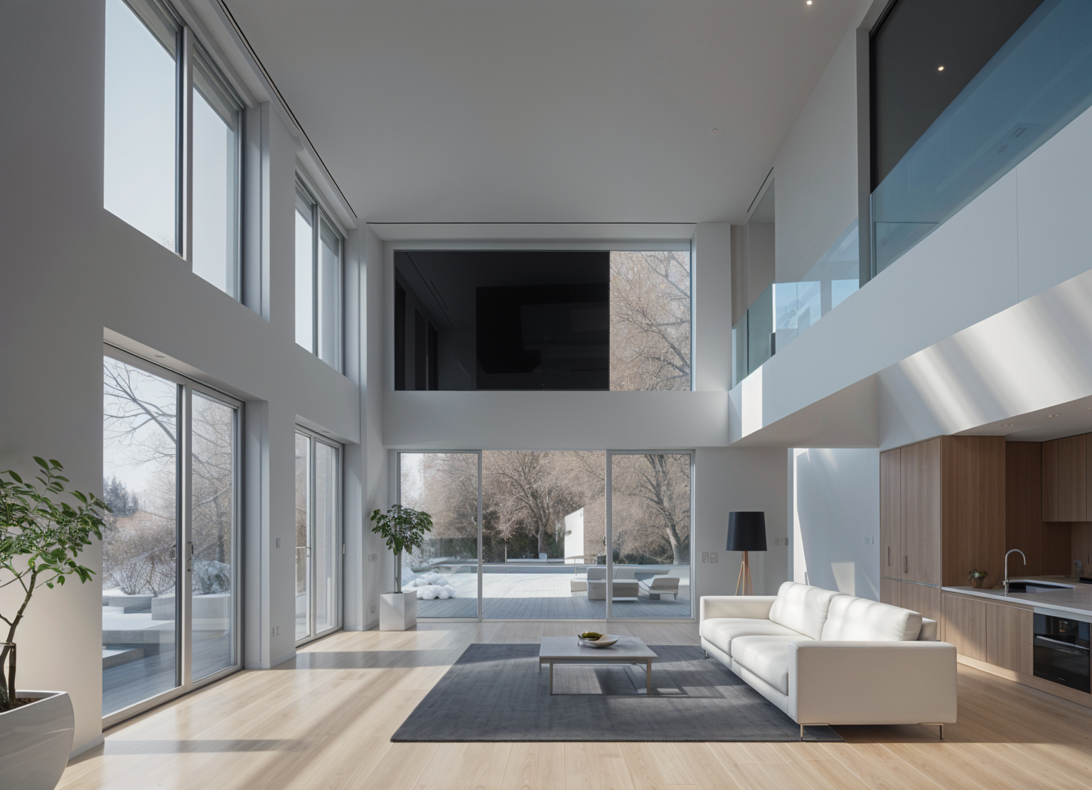 all cabinetry to be white shaker style pendant lights are these https lightingcollective com au products traditional ceramic pendant assorted size stone bench top to be https www caesarstone com au colours 4001 fresh concrete hand soap near kitchen tap is https alivebody com au products kitchen trio lemon pomegranate variant 43810328314096 country au currency aud tp cid 22748875176 tp id 762054959221 tp pid shopify au 8213717549296 43810328314096 tp source google gad source 1 gad campaignid 22748875176 gbraid 0aaaaab01yxqhra7btn0qohrmvf8mq dro gclid eaiaiqobchmi3frx89lfkgmvtmjmah3j5xlzeayyasabegisyfd bwe splashback tile is https dilorenzo com au products zelij collection chalk gloss 100x100mm please add some nice outdoor furniture to the outdoor deck and some landscaping there is a rail that runs in line with the kitchen please also include two horizontal skylights between the back cabinetry run and island bench timber finishes to be light oak bulkhead above full height cupboards gas strut window on servery outdoor balcony rail to be white