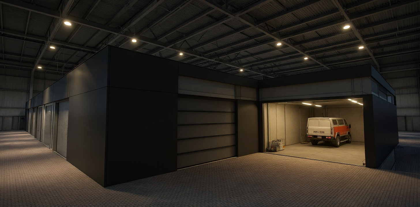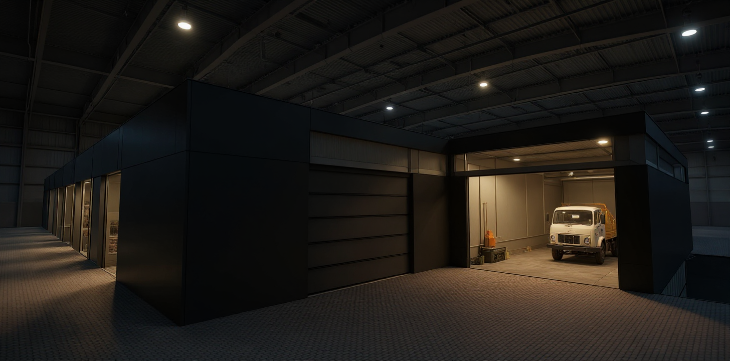 modern warehouse archutectural visualization vray render professional light setup led light large loading