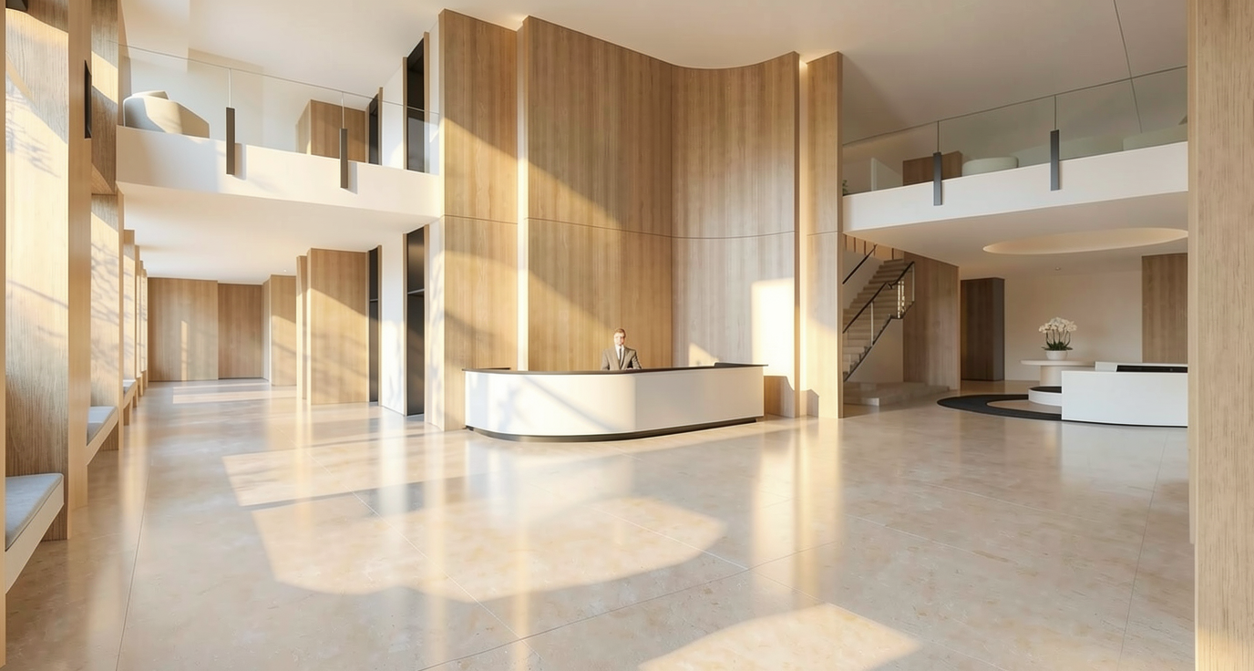 genau dieses rendering berarbeiten fotorealistisches innenraum foto exakt dieselbe perspektive und kameraposition wie das hochgeladene referenzbild 100 identische raumgeometrie exakt gleiche m belanordnung exakt gleiche verlegeart und richtung von parket wie vorlage exakt identische fensterpositionen mit gleichem ausblick auf den z richsee 40 meter tiefer durch die fenster seeaufw rts nach osten richtung berge alle fenster bodeneben weiches nat rliches tageslicht leicht schr g einfallende sonne durch die grossen fenster geschlossene r ume k nstlich ausleuchten sanfte realistische schatten blickrichtung ist nach s den sonnenlicht kommt von westen realistische materialien echte holztexturen stoff mit leichten gebrauchsspuren hochwertige oberfl chenreflexionen fensterrahmen dunkelbraun kleine gr npflanzen tisch ersetzen mit ovalem tisch original hermes m tiers 250x140 cm mit marmor collemandina grigio in braungrau dunkel mit 5 cm runden braunen tischbeinen blumen auf dem tisch sechs stylische st hle genau modell m tiers von herm s bezug in braunem leder mit stuhlgestell aus nussbaumholz f nf leuchten von eloa unique lights klarglas in verschiedenen gr ssen und unterschiedlichen h hen parket ruhig und hellgrau alle grauen w nde sind sichtbeton mit modernen leichten vorh ngen in graubeige aussen offene ungedeckte terrasse immer zwei runde filigrane schwarze einbauspots 8 cm vor den fenstern eine echte frau mit blonden haaren steht rechts neben dem tisch im raum es ist ein ganzk rperaufnahme einer attraktiven sehr schlanken blonden frau exakt 170 cm gross kleidergr sse 34 xs sehr zierlich schmale taille ca 60 62 cm schlanke beine kleine schultern ca 48 52 kg mitte 40 langes glattes hellblondes haar ovale gesichtsform hohe wangenknochen gerade nase volle lippen hellblaue augen dezentes nat rliches make up warmes offenes l cheln mit feinen lachfalten helle bis leicht gebr unte ebenm ssige haut selbstbewusste elegante ausstrahlung sneakers von fendi mit kleid von fendi sehr moderner minimalistischer look nat rliche farbwiedergabe golden hour feeling das bild muss wie eine professionelle fotografie aussehen es soll ein echtes und reales foto sein canon eos r5 35 mm festbrennweite f 2 8 hyperrealistisch dslr qualit t raw aufnahme 8k aufl sung extrem scharf perfekte tiefensch rfe professionelle architekturfotografie