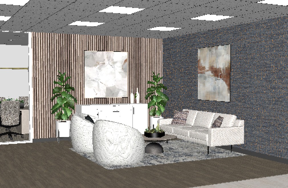 render photorealistic keeping finishes the same ceiling is standard office grid with 2x2 direct indirect led lights