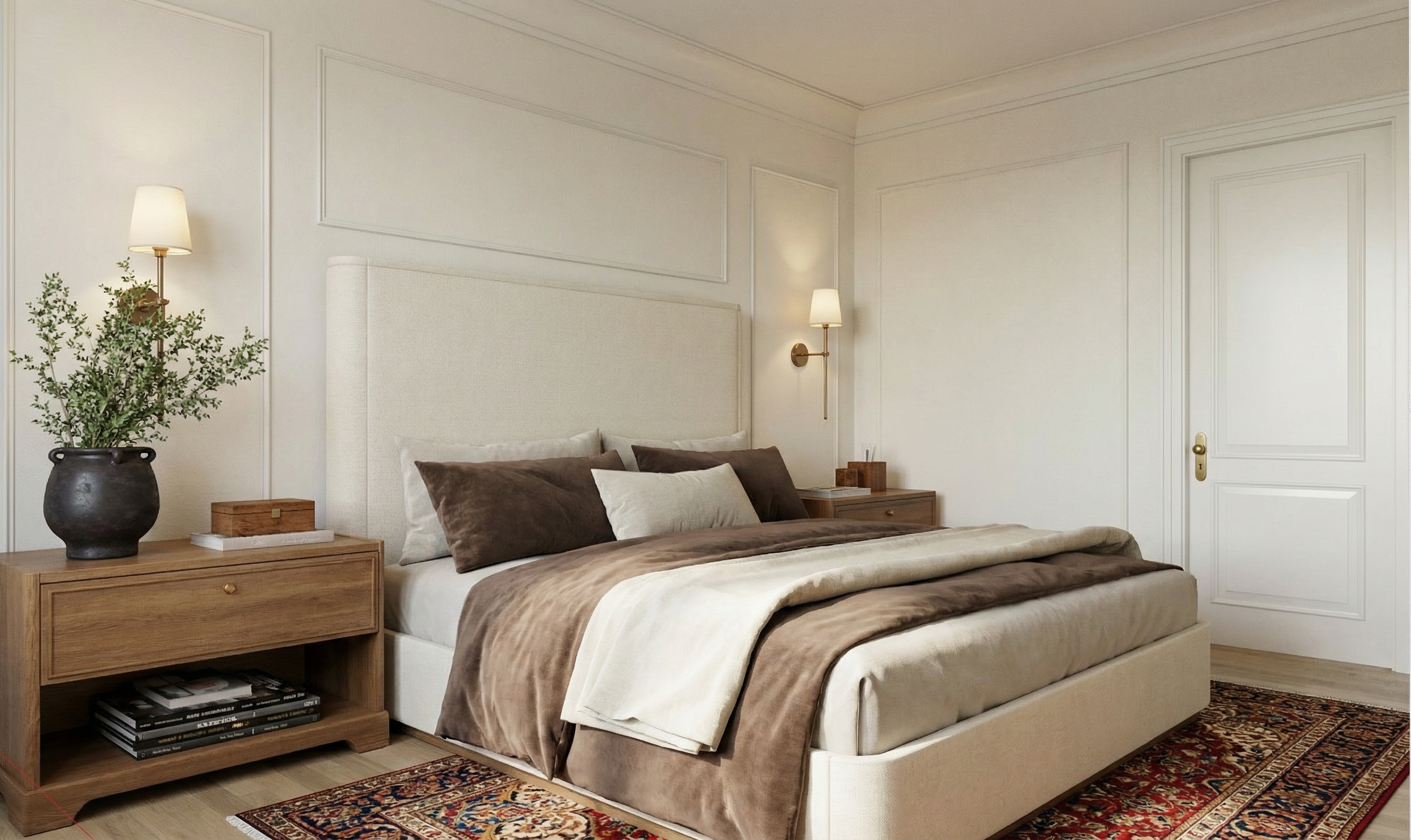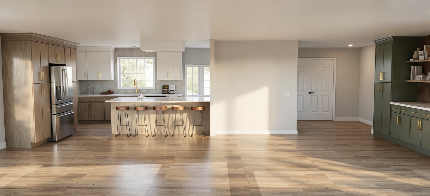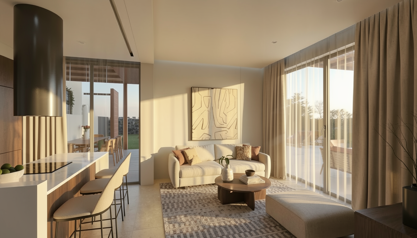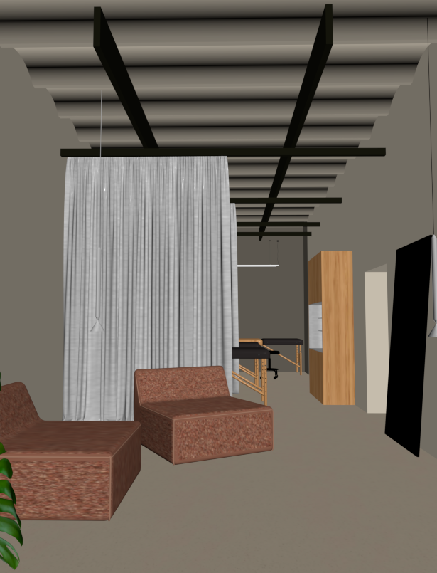 transform the provided view into a high quality photorealistic architectural visualization maintain accurate proportions and the original spatial layout the ceiling is made of brick with an irregular texture painted in a warm beige color the brick structure should remain subtly visible beneath the paint layer with natural imperfections slight wear uneven surface details and soft micro shadows between the joints the walls are beige with an irregular slightly raw plaster texture visible subtle surface variations unevenness and gentle tonal differences to enhance realism use realistic pbr materials with high resolution 8k textures include natural light reflections and subtle surface imperfections for authenticity lighting soft natural daylight global illumination realistic light diffusion that enhances the texture of the brick ceiling and uneven walls soft shadows balanced exposure professional interior photography look style modern minimalist interior visualization ultra realistic sharp details cinematic atmosphere high end architectural rendering