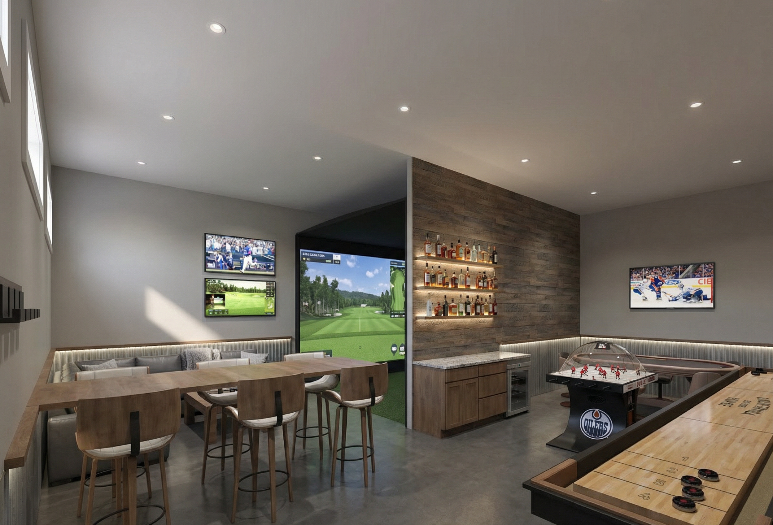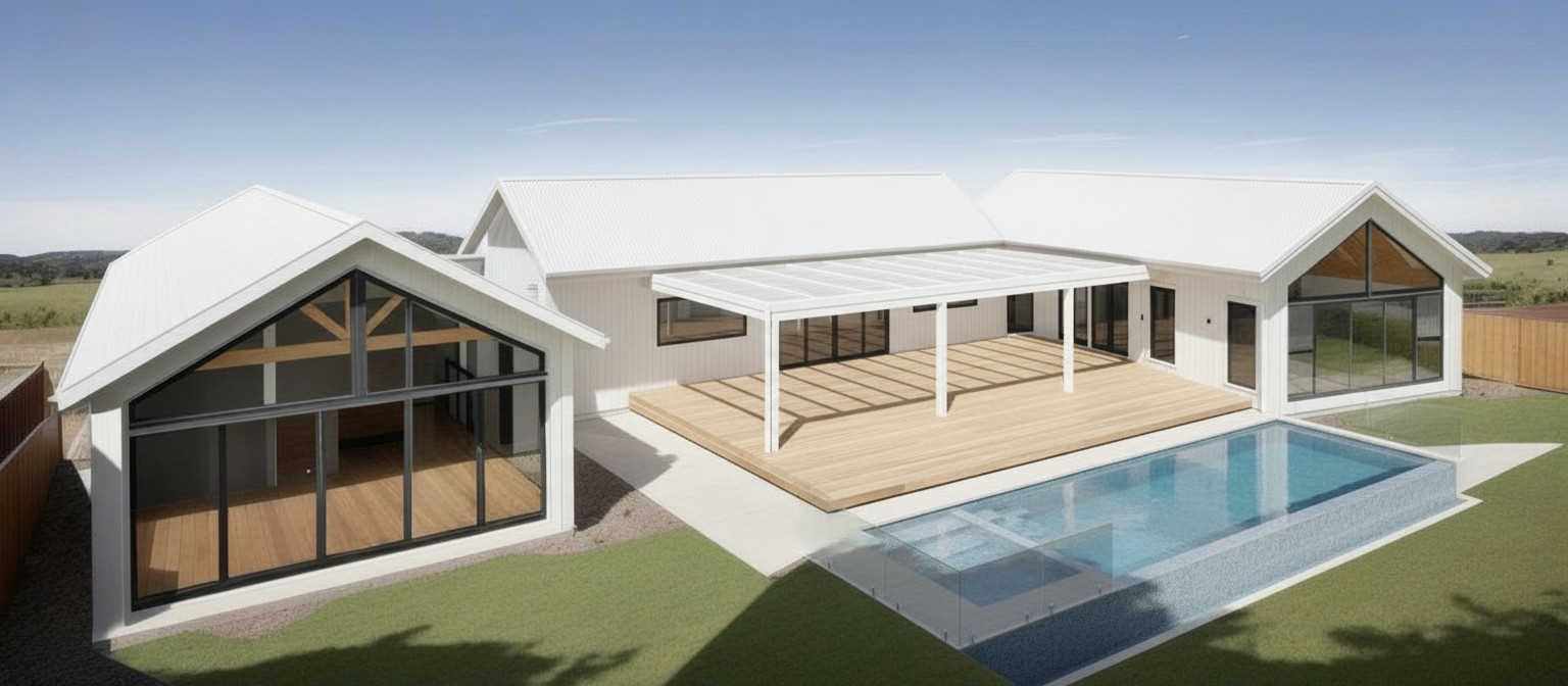 modernist exterior shot ultra photorealistic architectural render of a tturning this render into a dark version dark cladding and roofing architecture