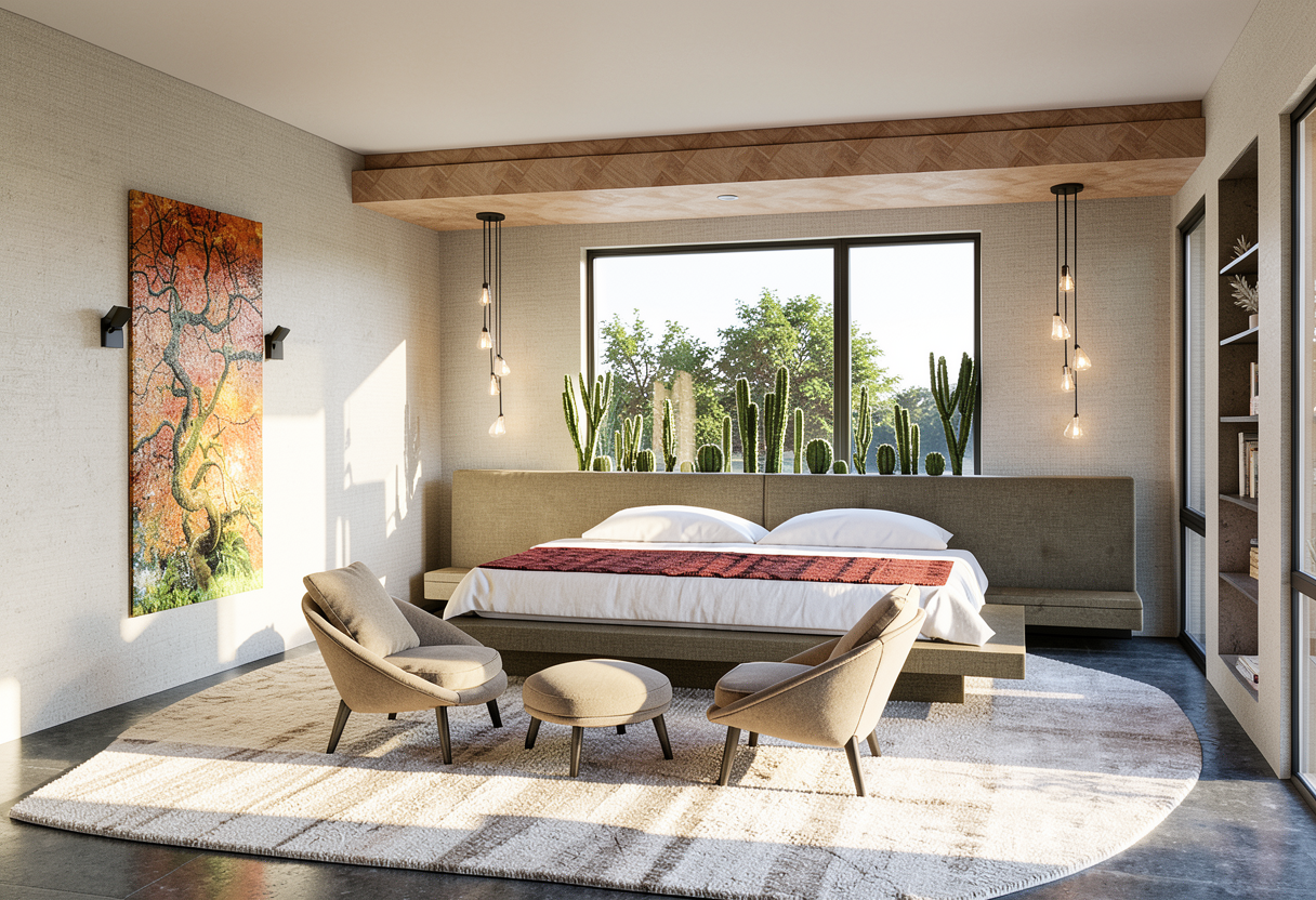 terrazza con tavolo in legno teak sedie in corda chiara e tessuto bianco caldo cucina con piano di lavoro fianchi e mensola in gr s effetto pietra gli elettrodomestici della cucina sono cromati la mensola della cucina ha una strip led sotto che illumina il piano di lavoro nella pergotenda sopra al tavolo c una strip led incassata perimetrale accesa la pedana in legno della vasca idromassaggio ha la strip led nei gradini sopra alla pedana ci sono dei cuscinoni in tessuto blu scuro il divano in tessuto bianco caldo con struttura in legno teak tavolino e banco sgabelli in legno teak gli sgabelli sono cromati il parapetto della terrazza in vetro metti uno sfondo con case chiome di alberi e mare in lontananza situazione di tramonto il sole non deve essere visibile nell immagine metti qualche oggetto per ambiente conviviale esterno