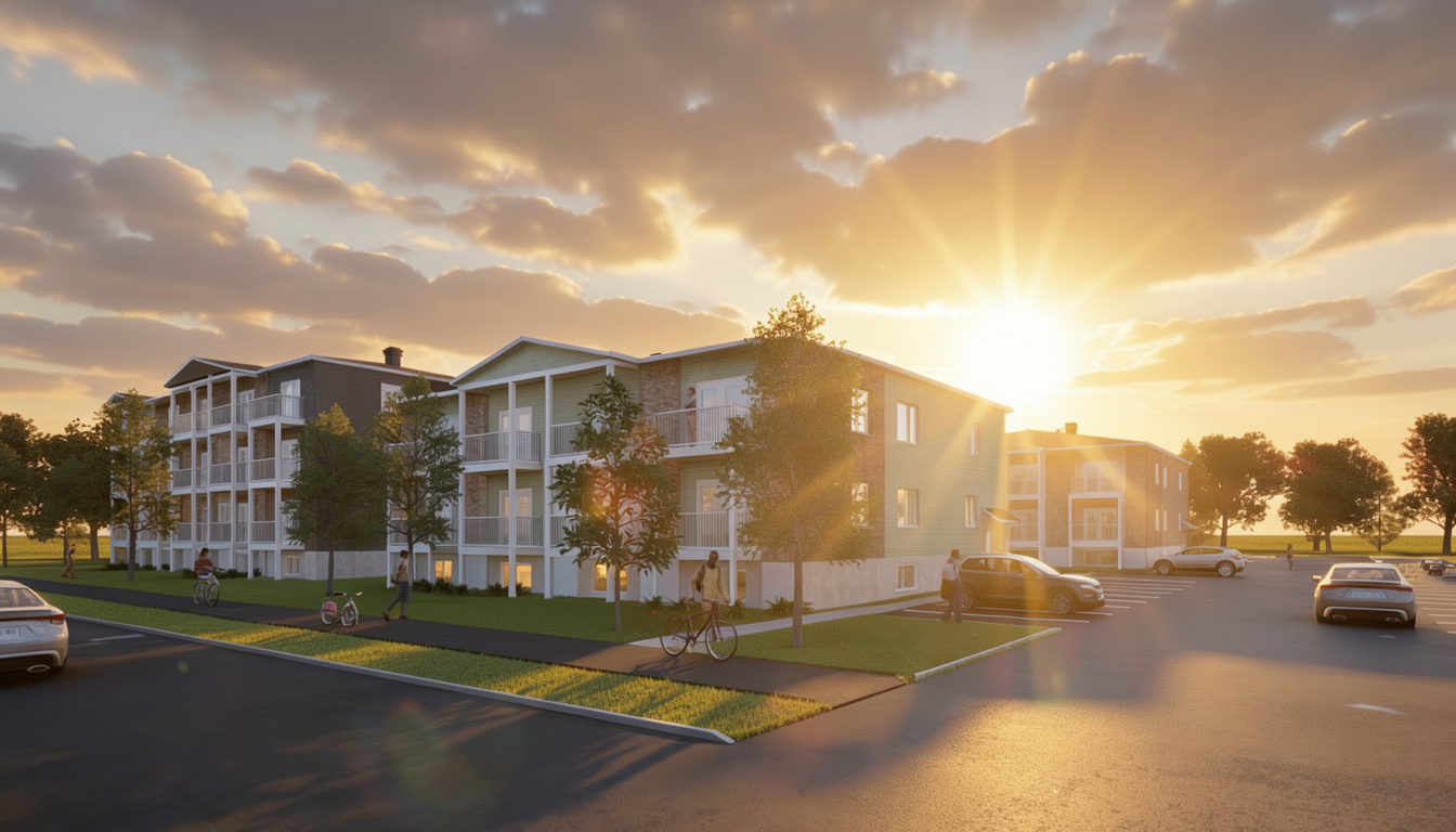 provide a photorealistic rendering keep all the elements proportions and materials as they are provide a grey beige leather on the sofa provide a deep green fabric on the chair add a linear light wash at the wood wall