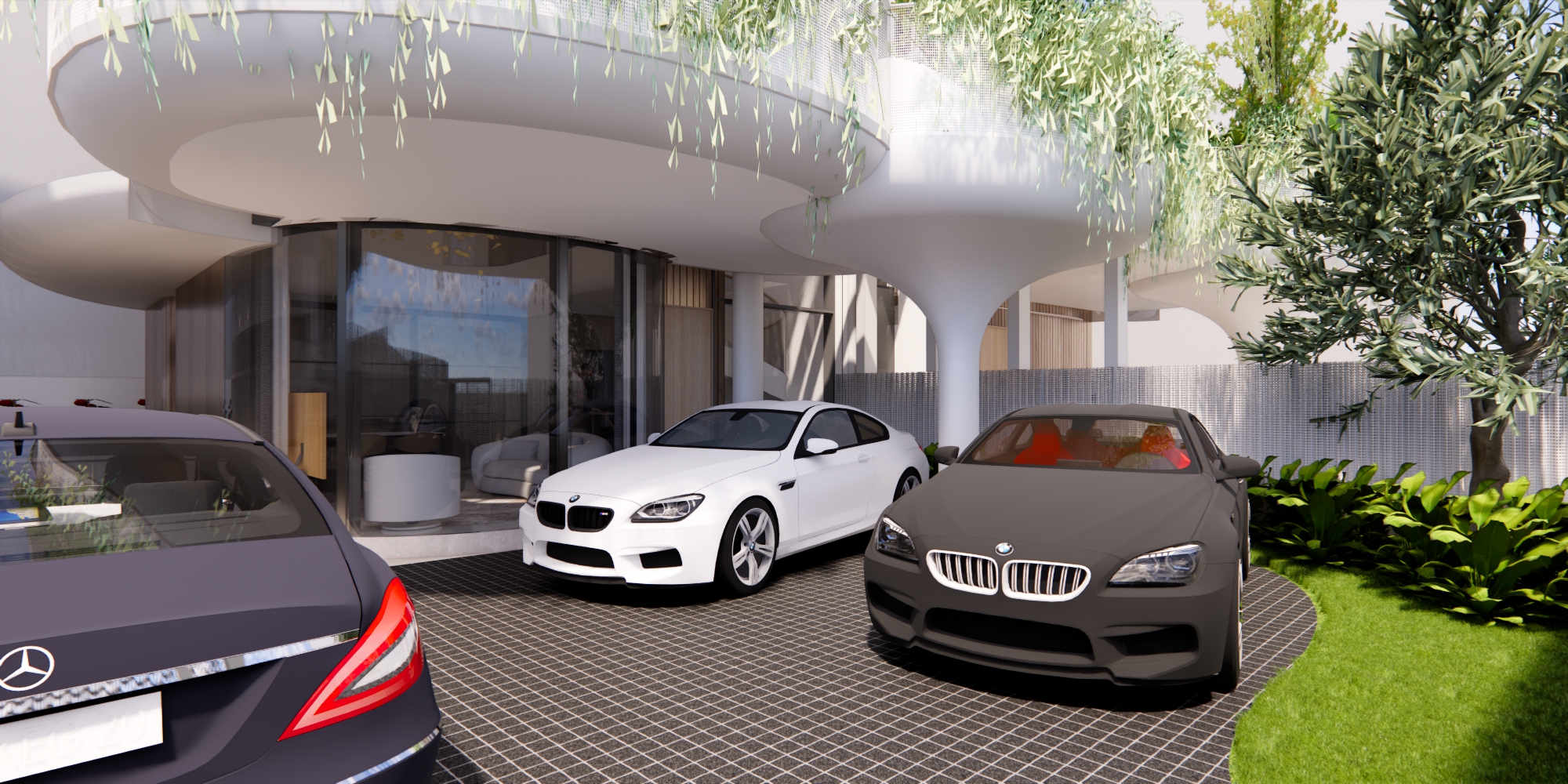 key everything including materials finishing texture white paint exterior smooth finish do not alter material or color keep perforated screen only touch up with more realistic rendering and lighting