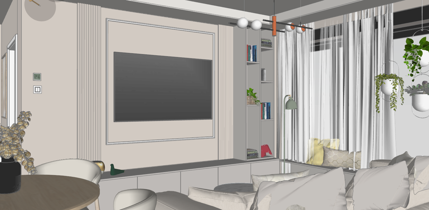 everything is light and cozy walls are beige sand color and furniture is cashmere light oak