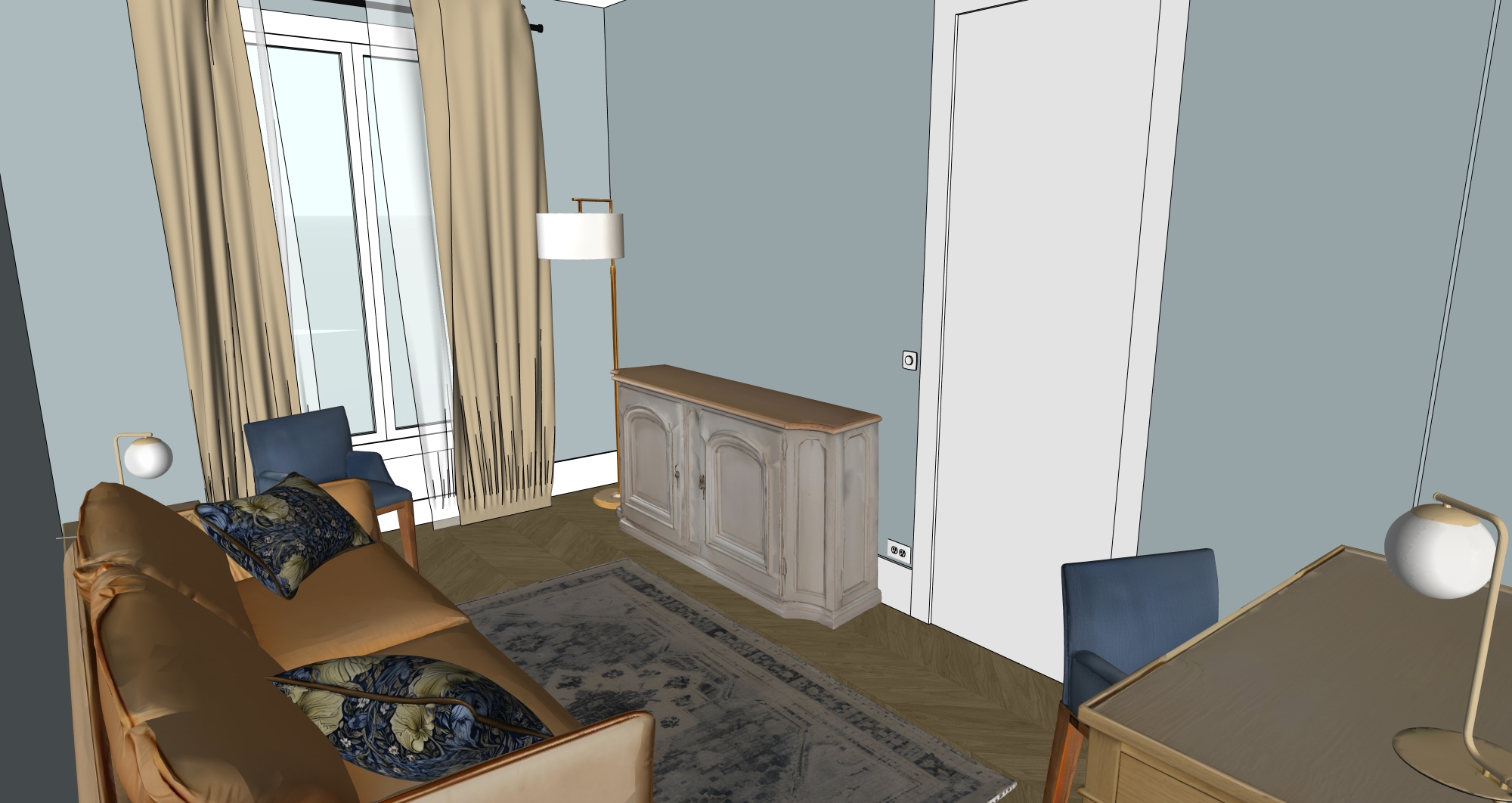 cosy interior in day time curtains are satin light gold color