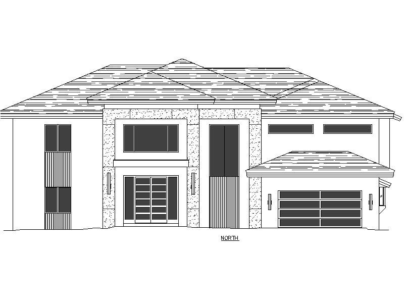 modern exterior shot grey concrete tile roof south florida landscape afternoon lighting large format tile on verical columns white stucco field black front door and garage door architecture