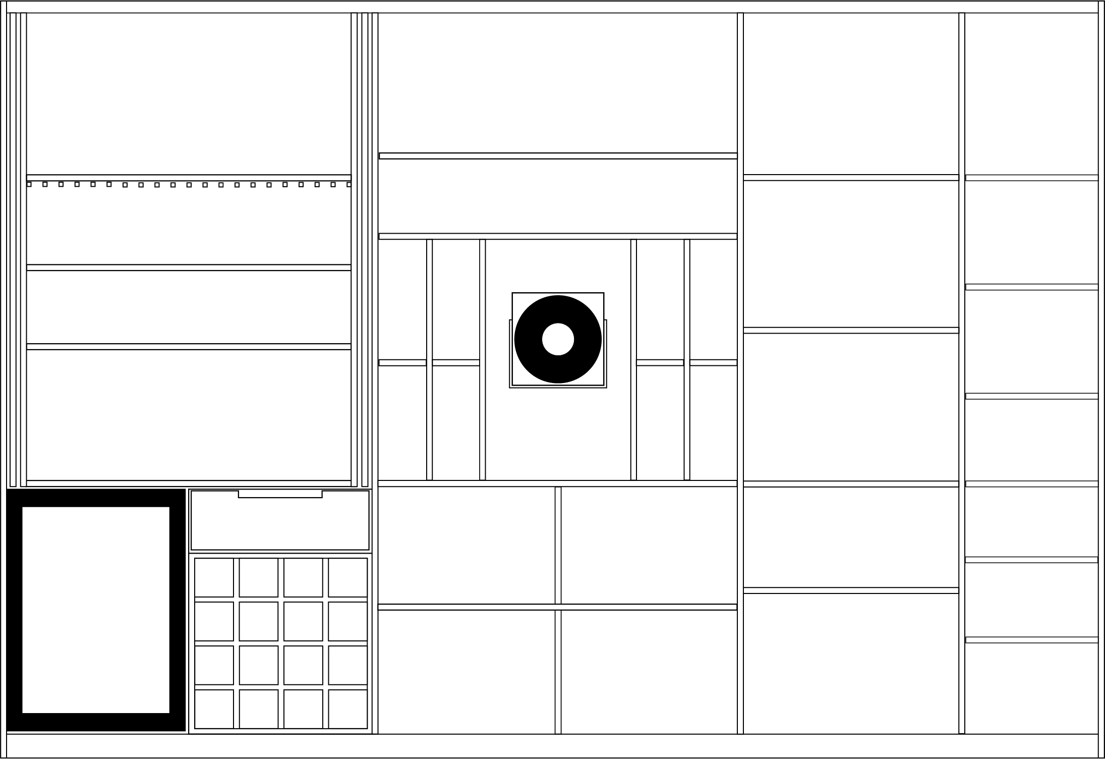 interior shot render cabinet internals in dark oak with home bar on left and all other areas shelved