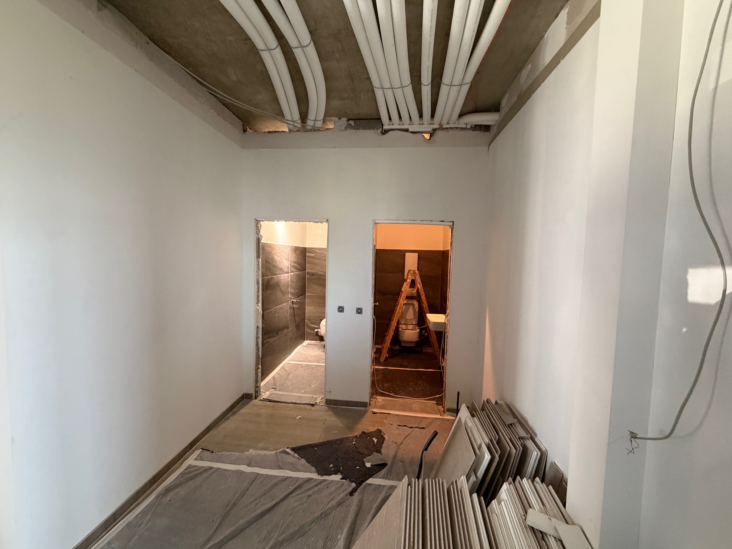 h nge die decke 6 cm ab rund um indirekte beleuchtung einbauspots die wand mit zwei t ren in die toiletten rahmenlos die wand und die t ren furniert modern und minimalistisch