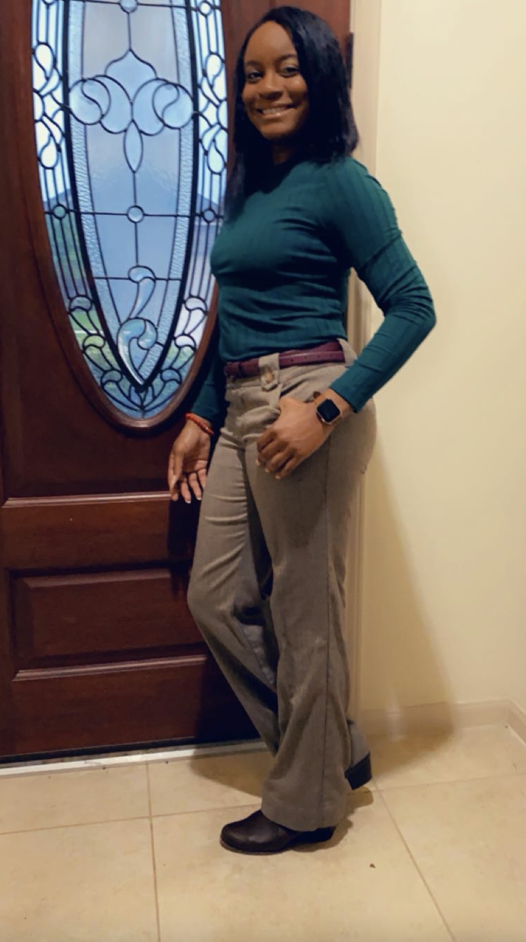 pretty black woman going into elevator