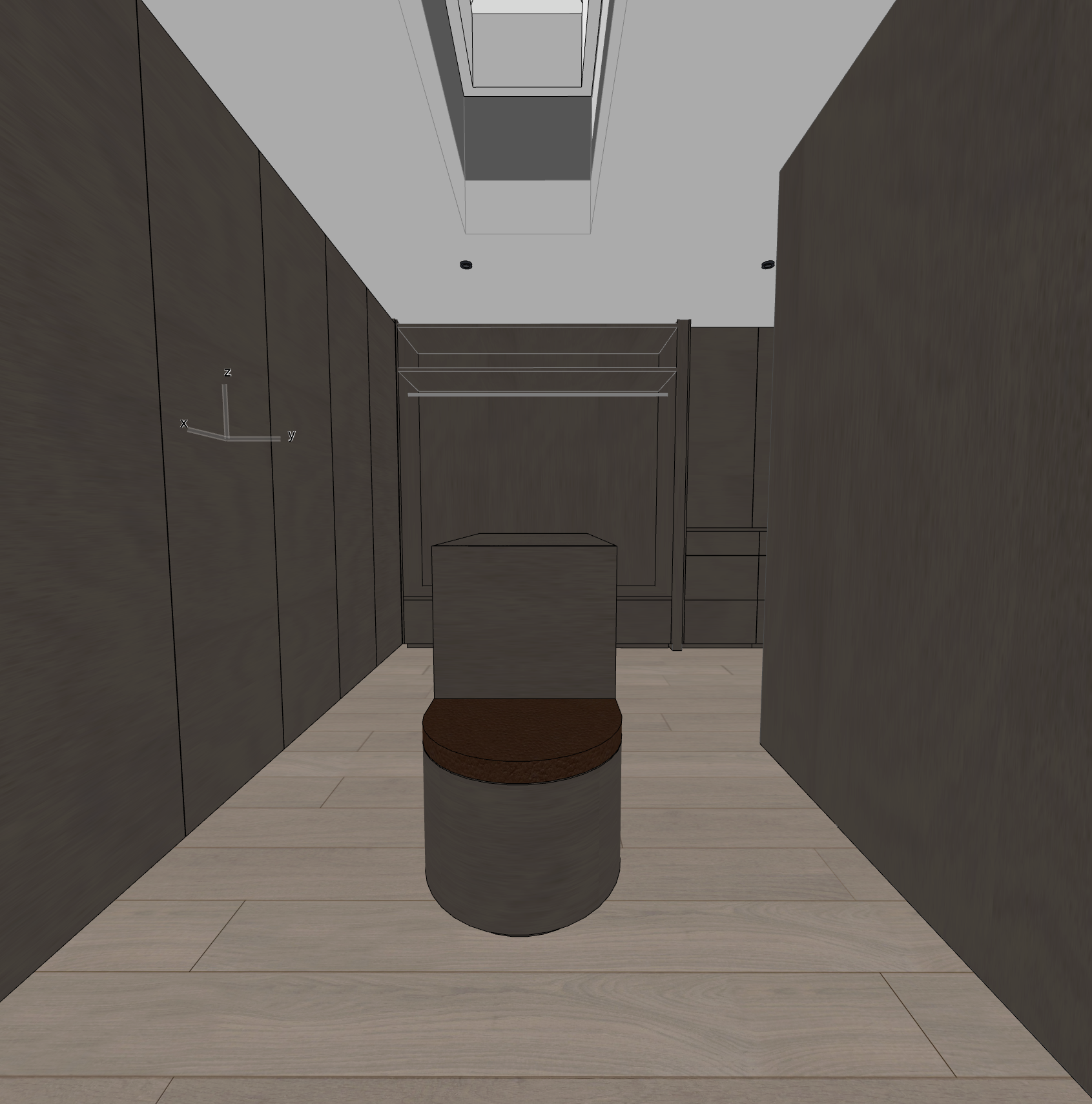use whitewash oak for the cabinets have light coming from the skylight do not change the cabinets add womens aspen ski clothes to hanging rod