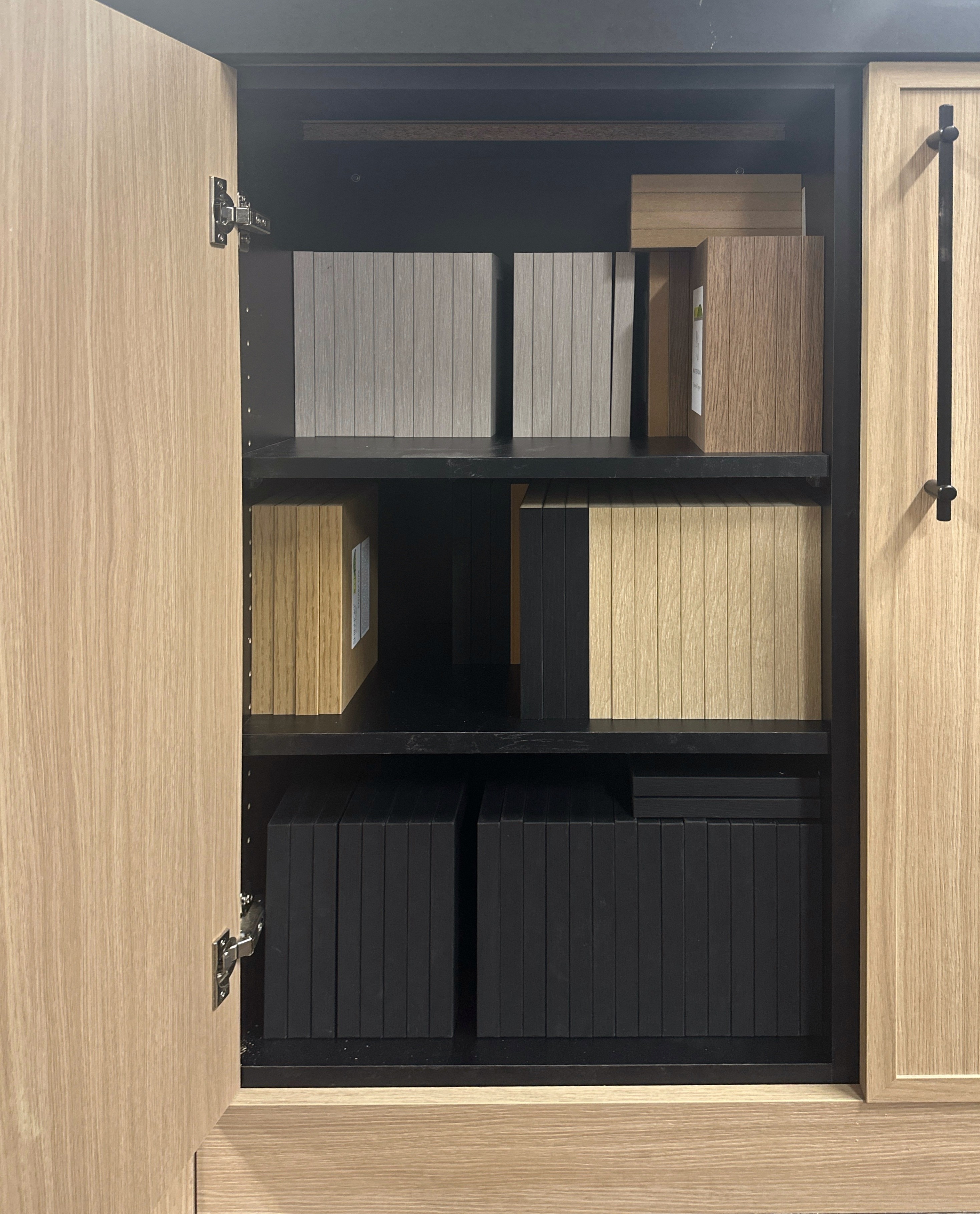 remove everything inside these cabinets and restage items sitting on the shelves for a kitchen keep the shelf placement as is do not add plants
