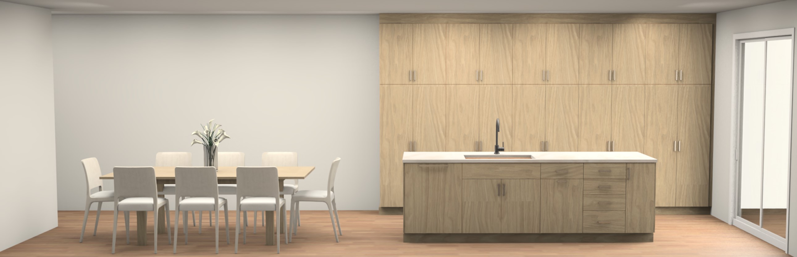 maintain light wood tone add warm lighting do not alter structure of room or cabinets or appliances