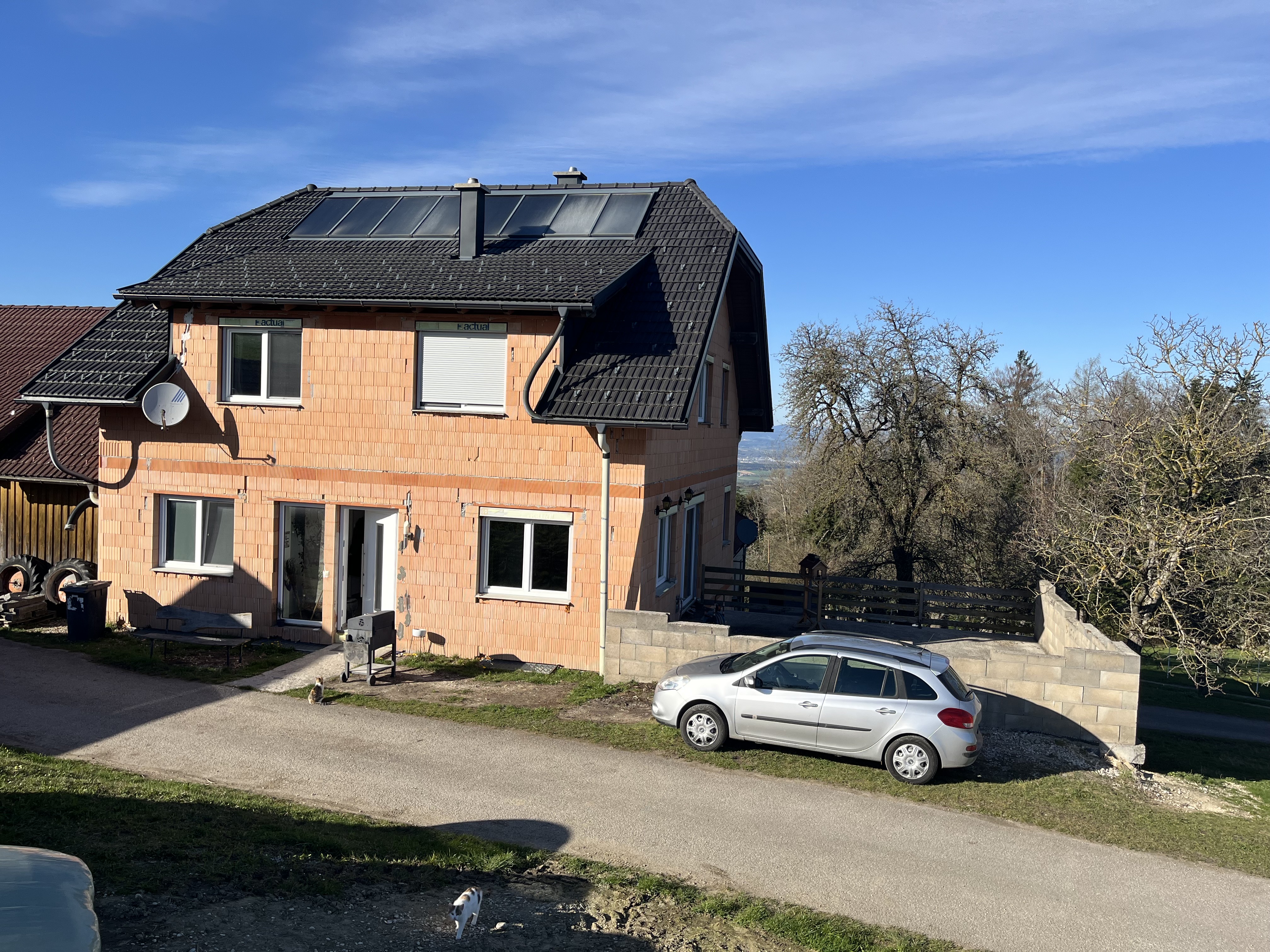 i want the house in a really light brown and the wall too place stones in the driveway