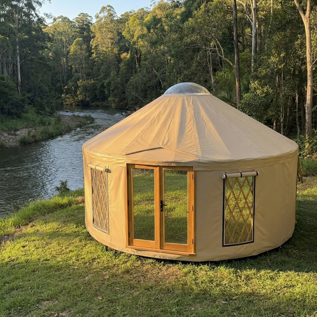 less vines in the background add tea trees in the background with small white flowers remove tea tree in the foreground the planter next to the open door needs to be corten instead of wood