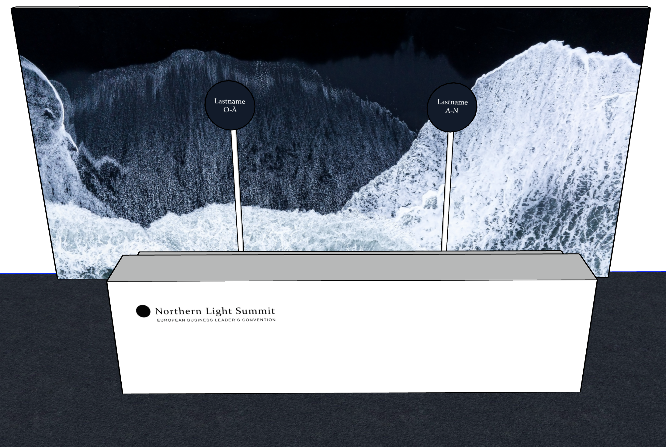 registration desk for seminar dark blue carpet on floor lots of sunlight in the room do not change the logo s