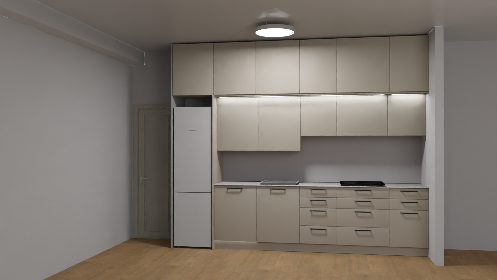 keep forms and sizes of all details in the kitchen such as lustre lights cabinets and etc keep colors and textures same