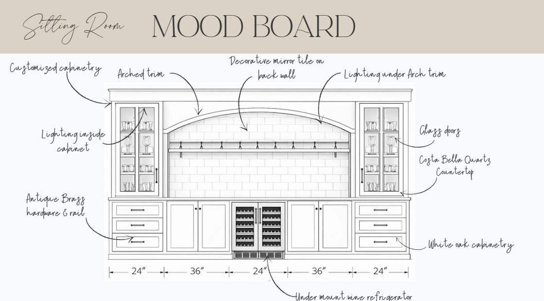 change all cabinets and trim work to white oak wood and the mirror tile to the match the uploaded mirror tile