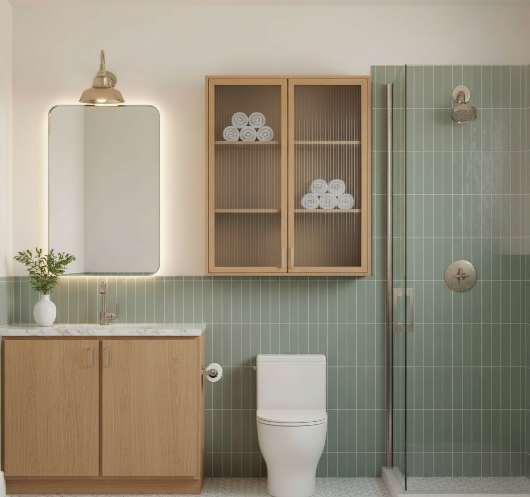 do not show towels rolled up in cabinet do not change any geometry do not change any elements do not change camera angle do not change lighting do not change view