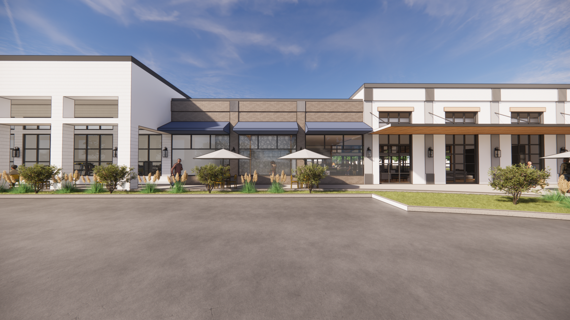 turn this into a village center retail shops stores keep scale the same buildings however dont need to be attached