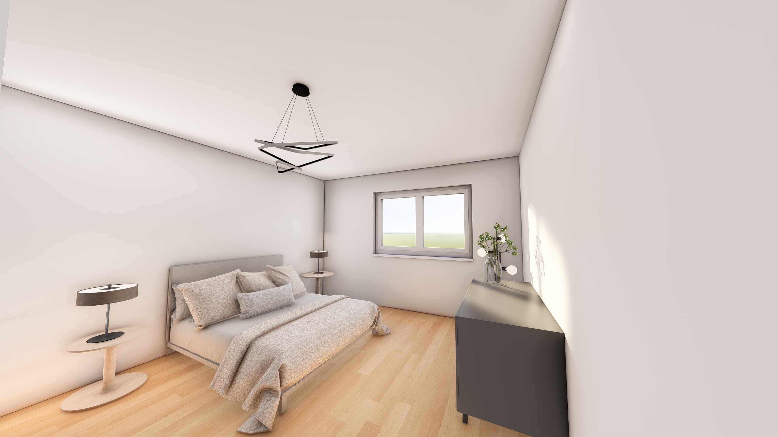 a modern and luxury bedroom in front of the windwo there are curtains bright daylight