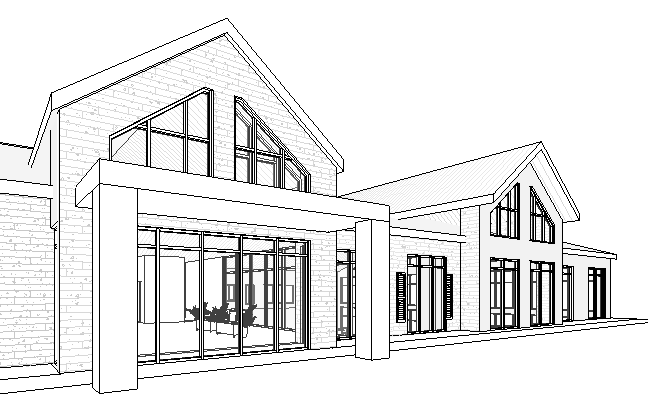 clubhouse pool cast stone building with black standing seam roof sharp edges black window and door frame concrete front columns
